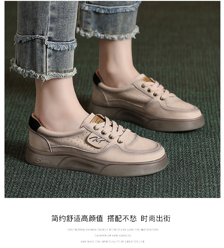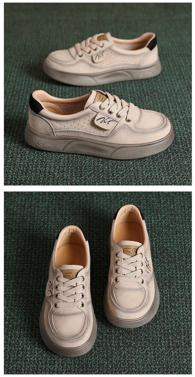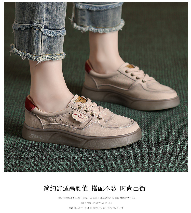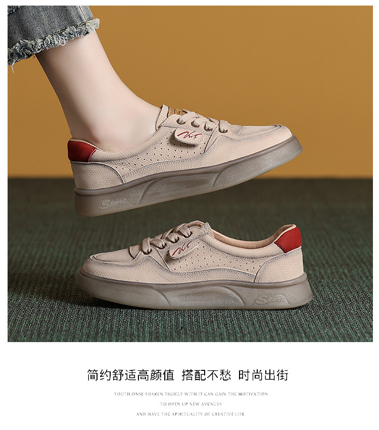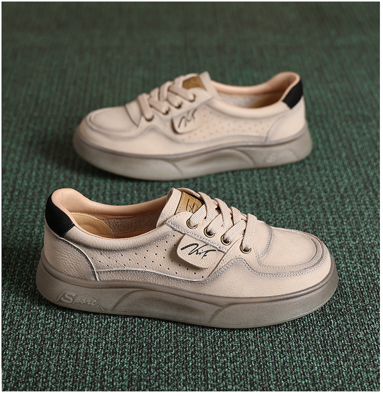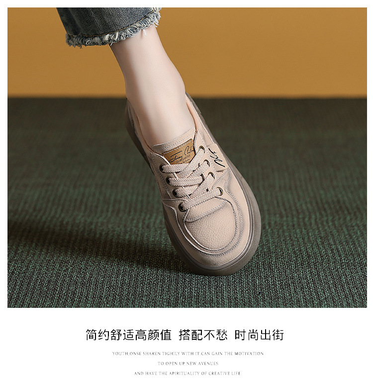 2025년 신상 봄 가을 천연 소가죽 얕은 굽 여성용 레트로 캐주얼 두꺼운 밑창 젤리 밑창 흰색 신발스토어 가기