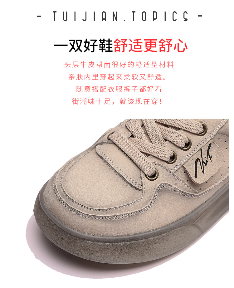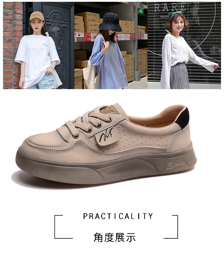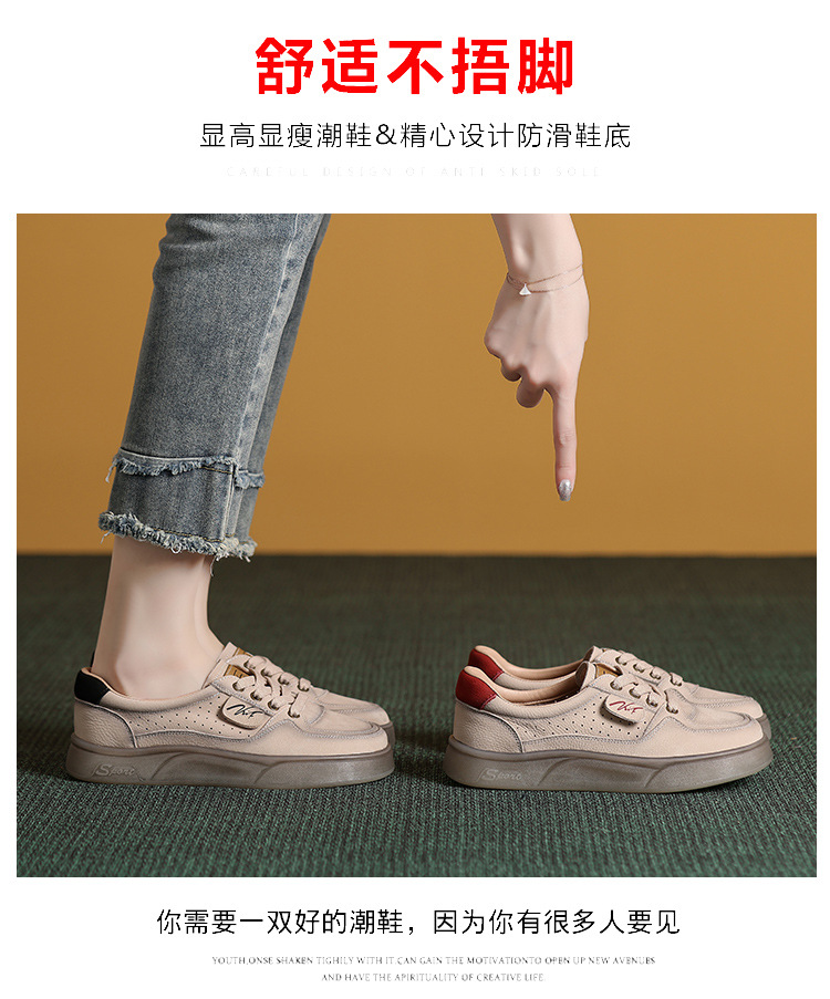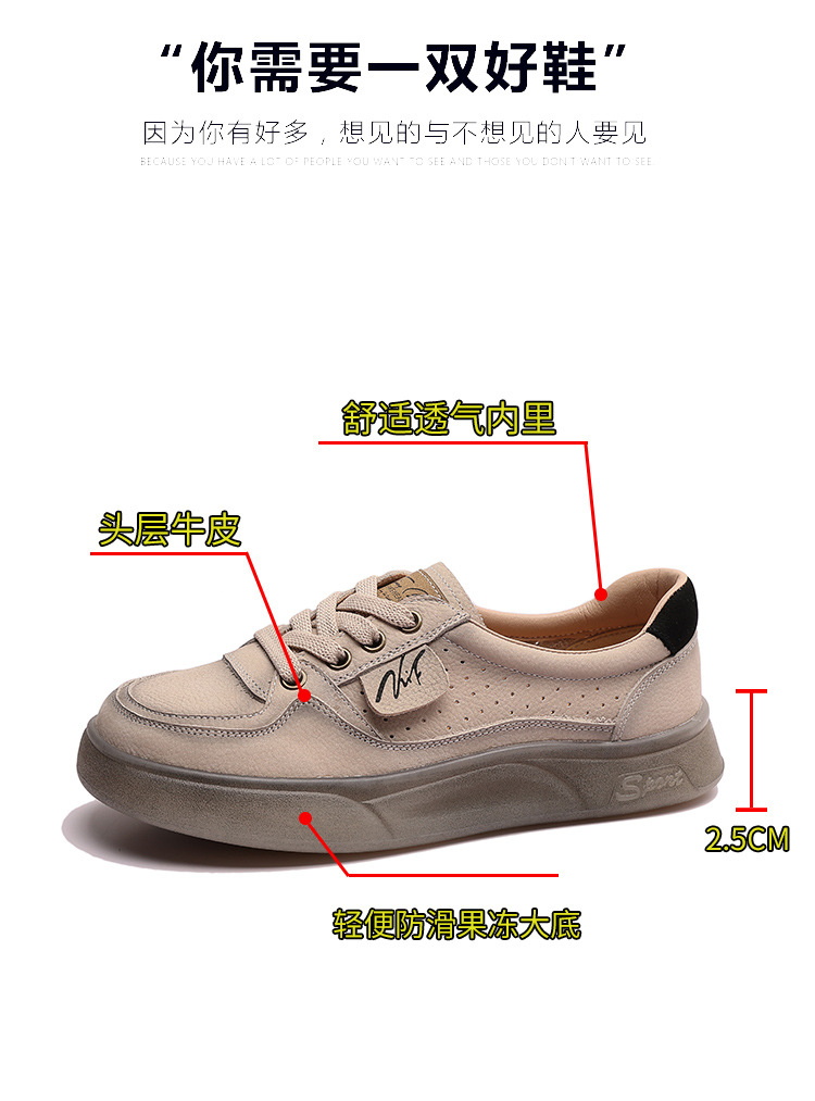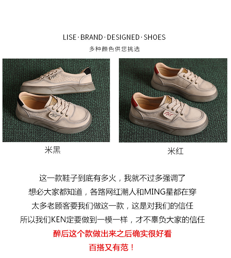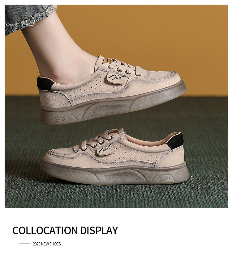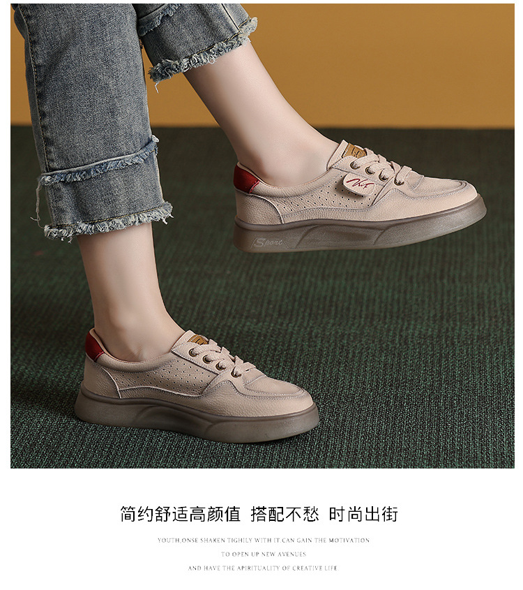 2025년 신상 봄 가을 천연 소가죽 얕은 굽 여성용 레트로 캐주얼 두꺼운 밑창 젤리 밑창 흰색 신발스토어 가기