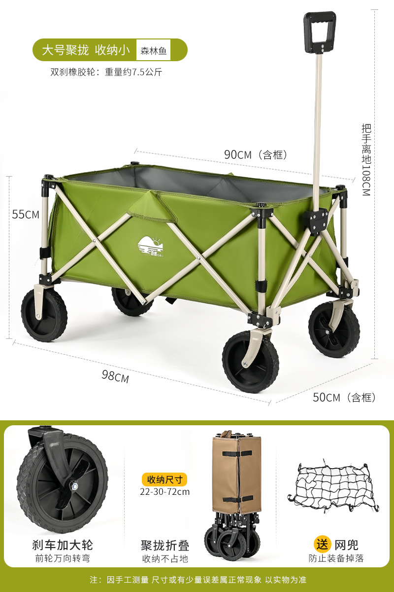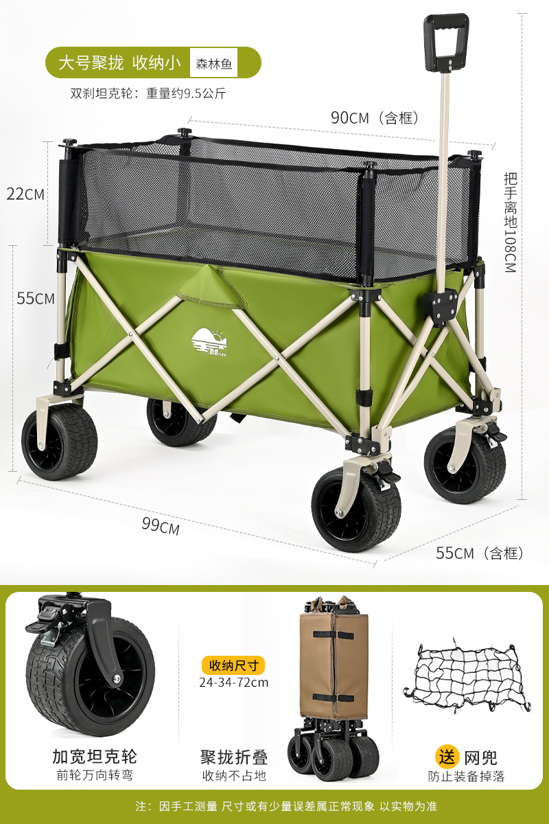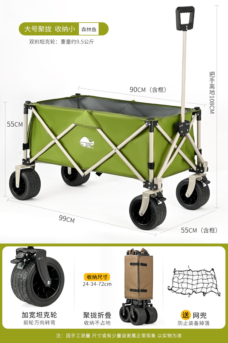 • 높아진 울타리 [대형 업그레이드, 집결수납-탱크모델] 더블 브레이크 유니버셜 와이드 휠 포레스트 피쉬