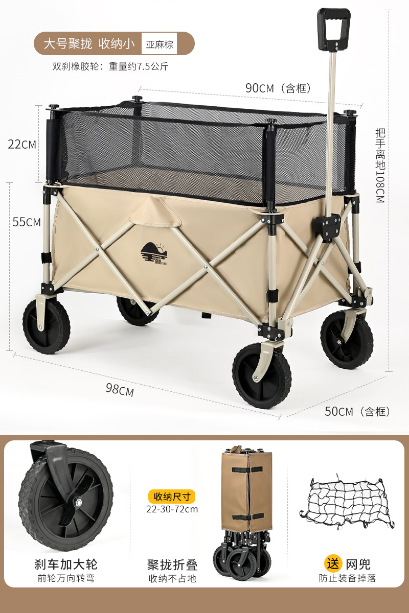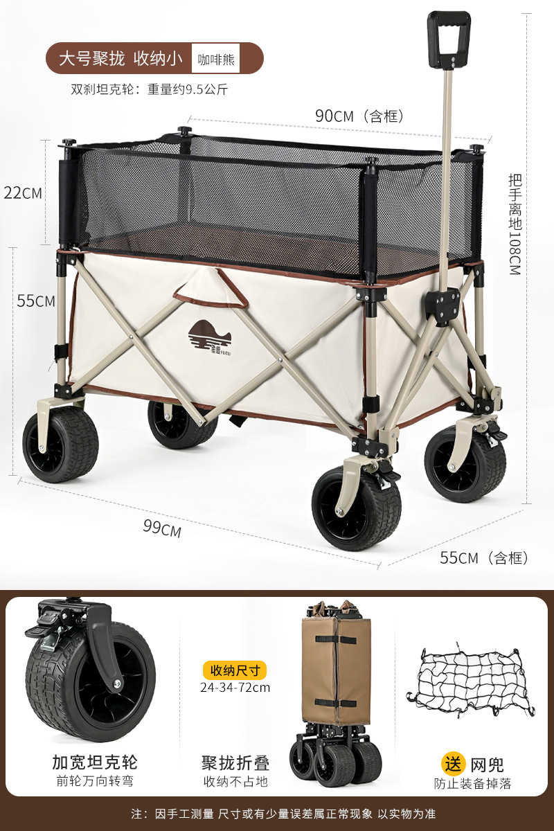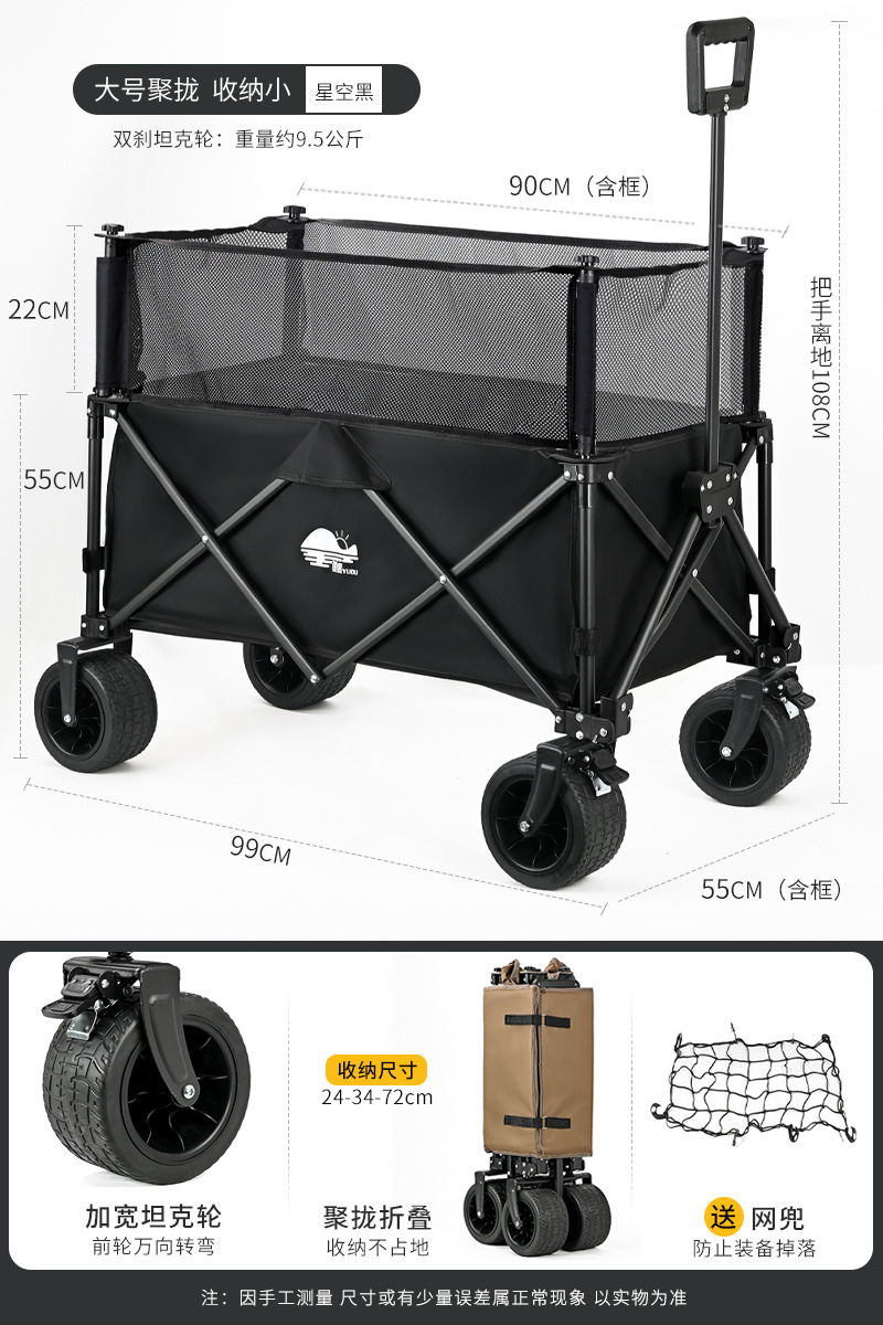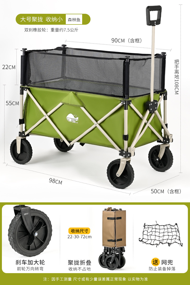 • 높아진 울타리 [대형 업그레이드, 집결수납-탱크모델] 더블 브레이크 유니버셜 와이드 휠 포레스트 피쉬