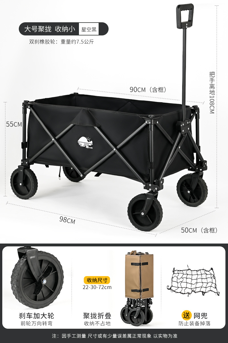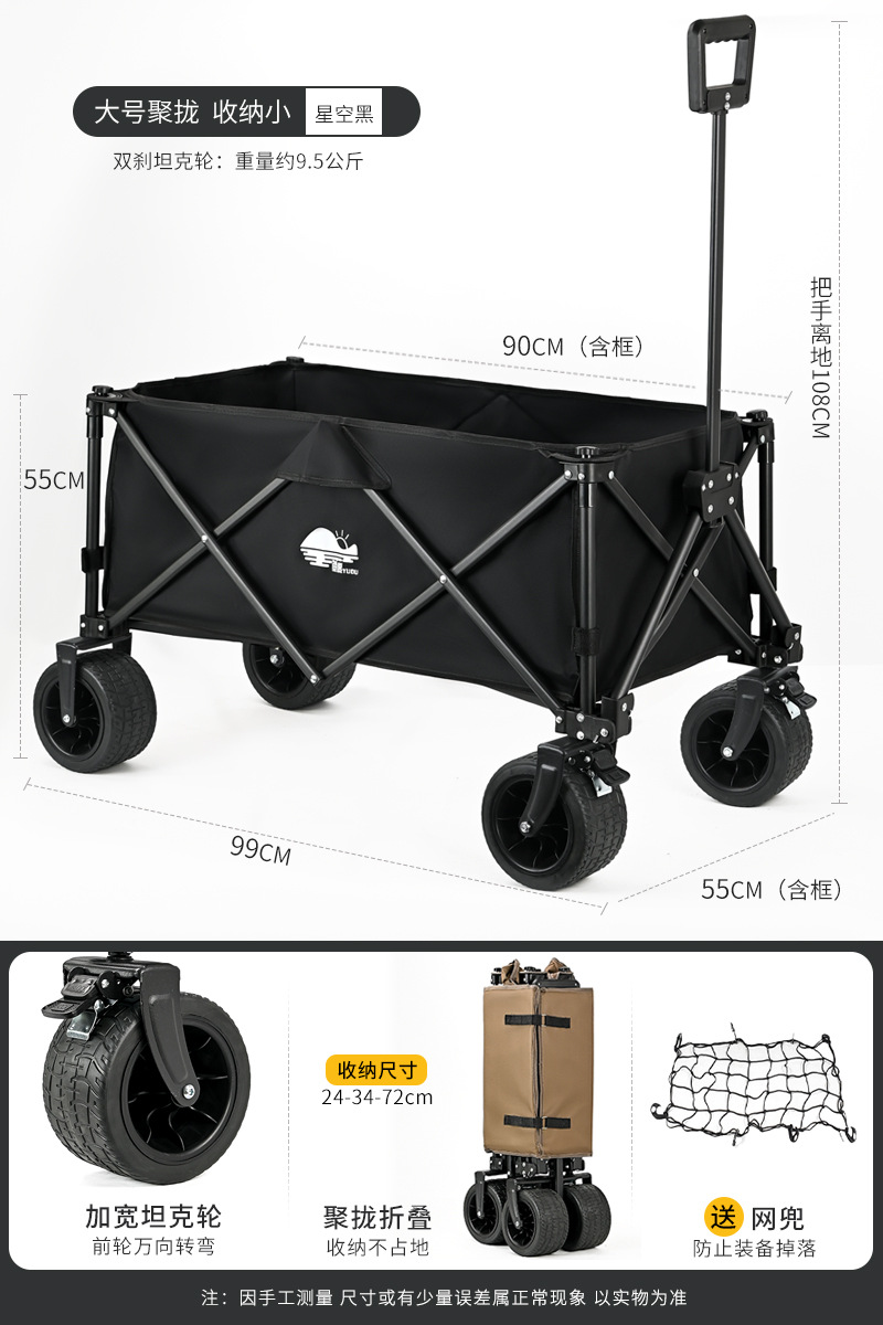 • 높아진 울타리 [대형 업그레이드, 집결수납-탱크모델] 더블 브레이크 유니버셜 와이드 휠, 별이 빛나는 하늘 블랙