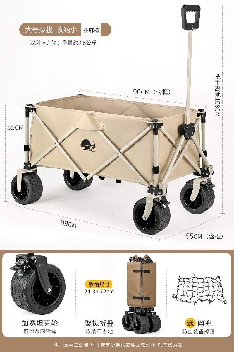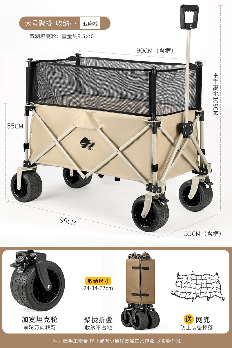 • 높아진 울타리 [대형 업그레이드, 집결수납-탱크모델] 더블 브레이크 유니버셜 와이드 휠, 린넨 브라운