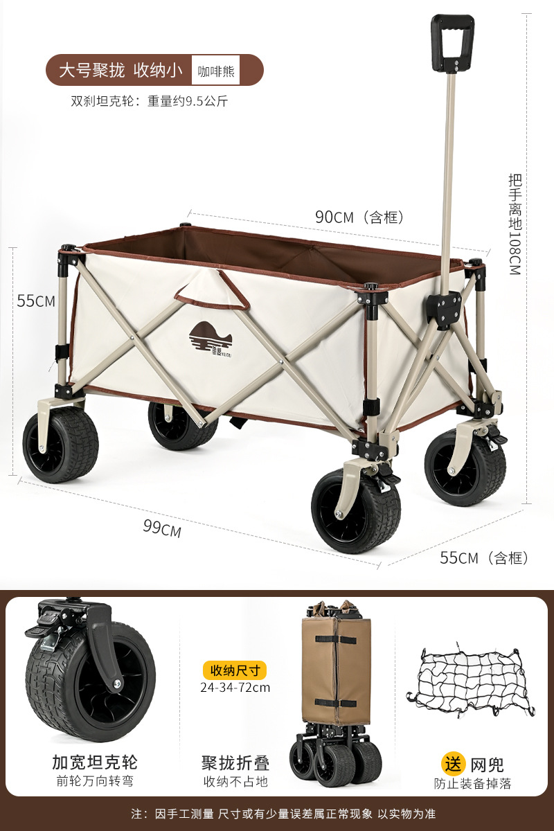 • 높아진 울타리 [대형 업그레이드, 집결수납-탱크모델] 더블브레이크 유니버셜 와이드 휠 커피베어