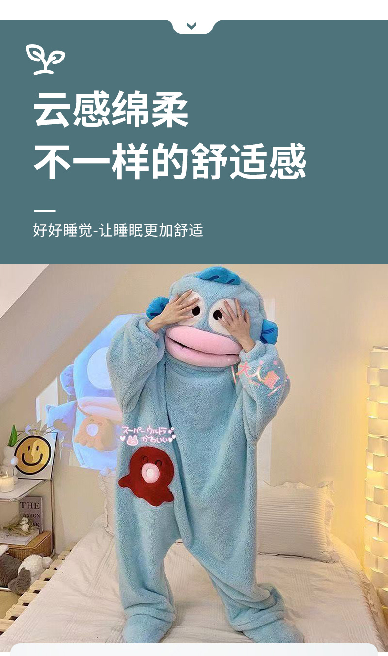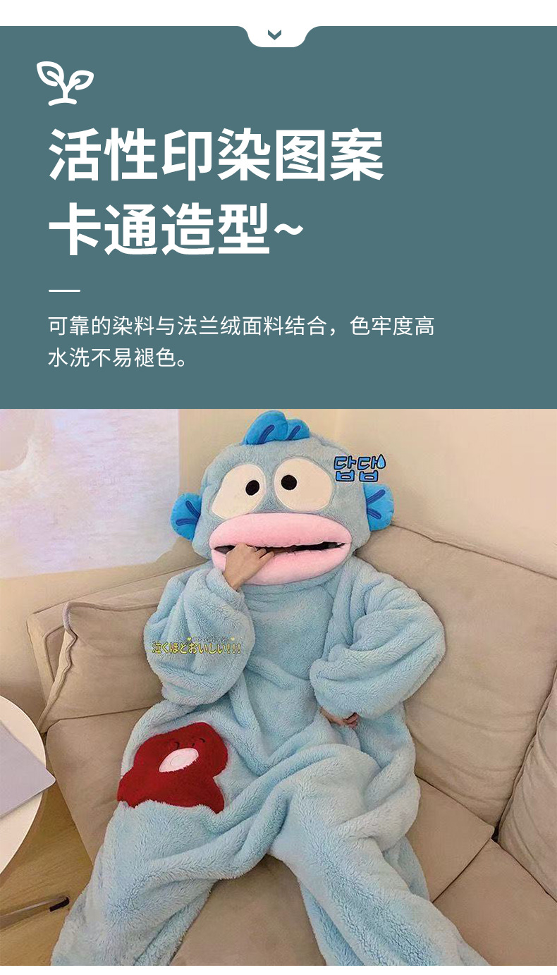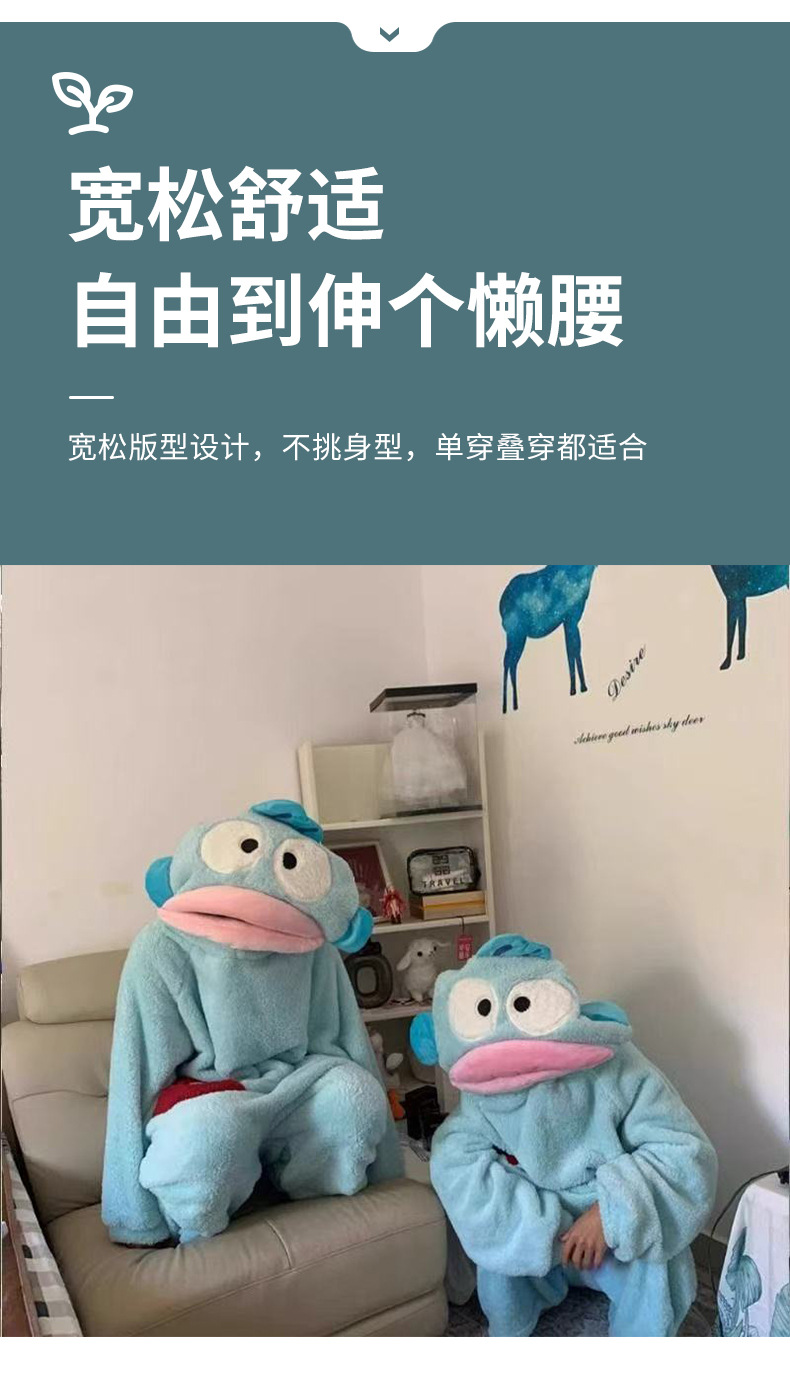 Ugly Fish Hanton 귀엽고 재미있는 원피스 커플 잠옷 겨울 모래 조각 두꺼운 산호 벨벳 만화 가정복