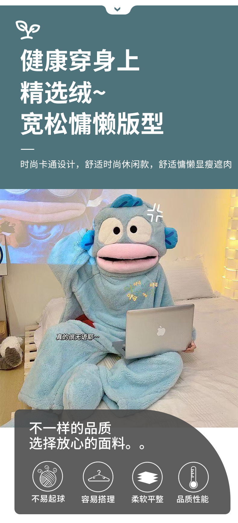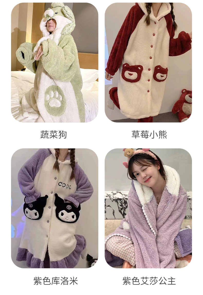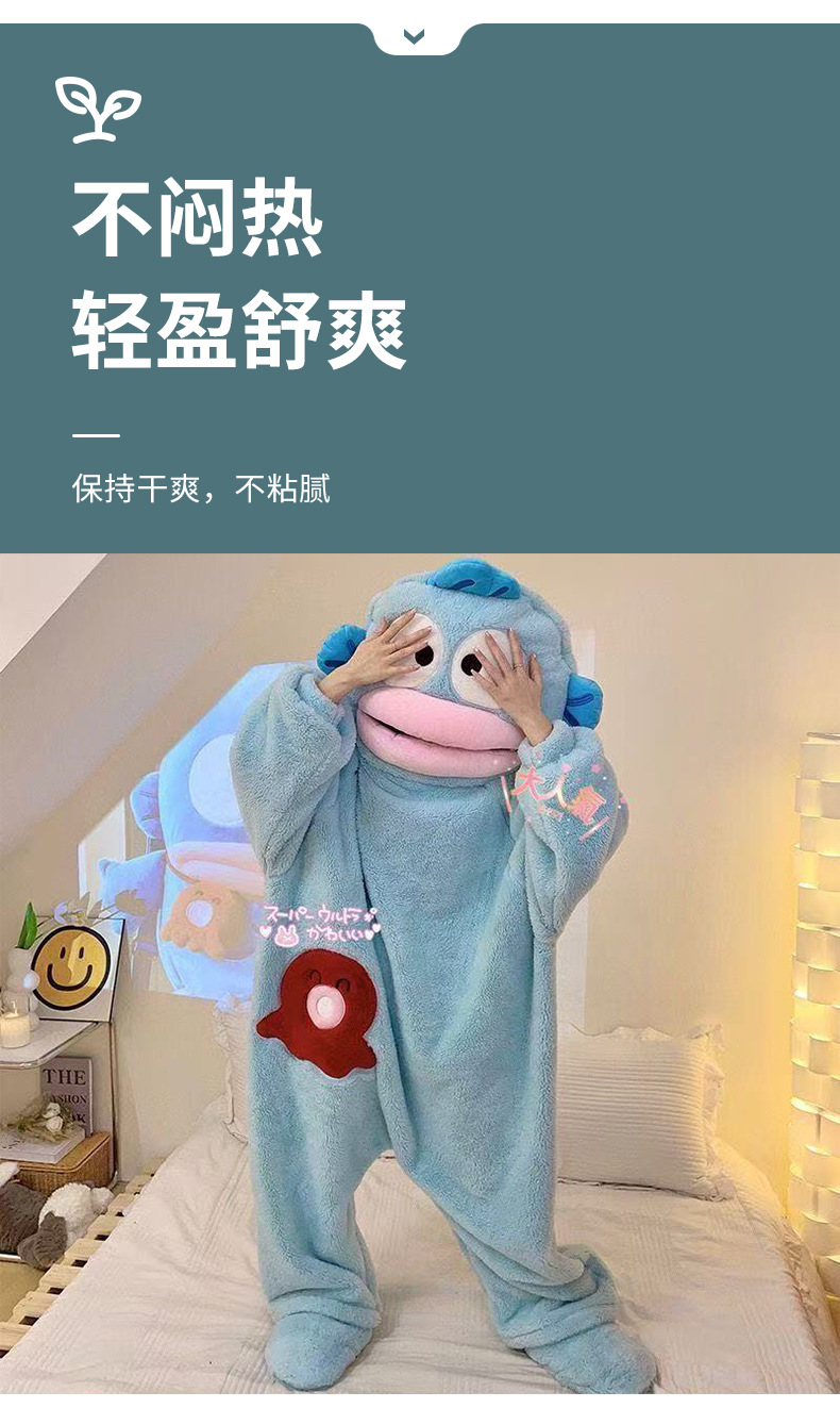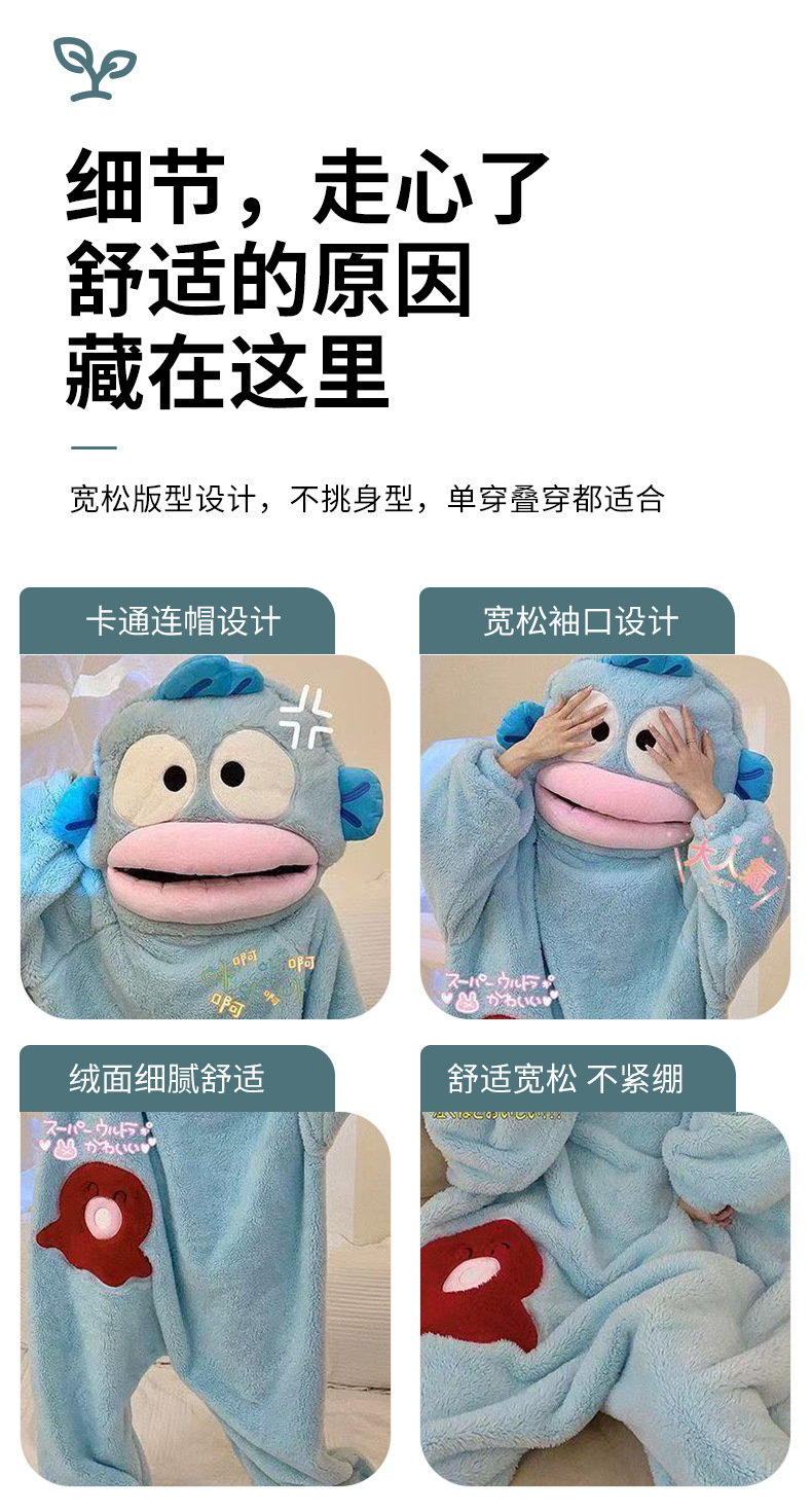 Ugly Fish Hanton 귀엽고 재미있는 원피스 커플 잠옷 겨울 모래 조각 두꺼운 산호 벨벳 만화 가정복