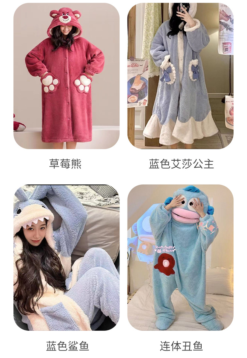 Ugly Fish Hanton 귀엽고 재미있는 원피스 커플 잠옷 겨울 모래 조각 두꺼운 산호 벨벳 만화 가정복스토어 가기