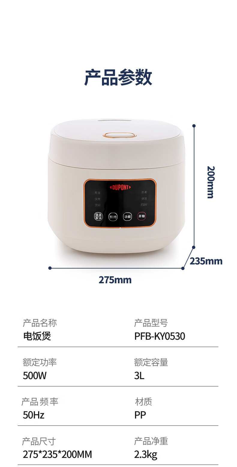 듀폰 가정용 편리한 밥솥 PFB-KY0530 세라믹 유약 붙지 않는 밥솥