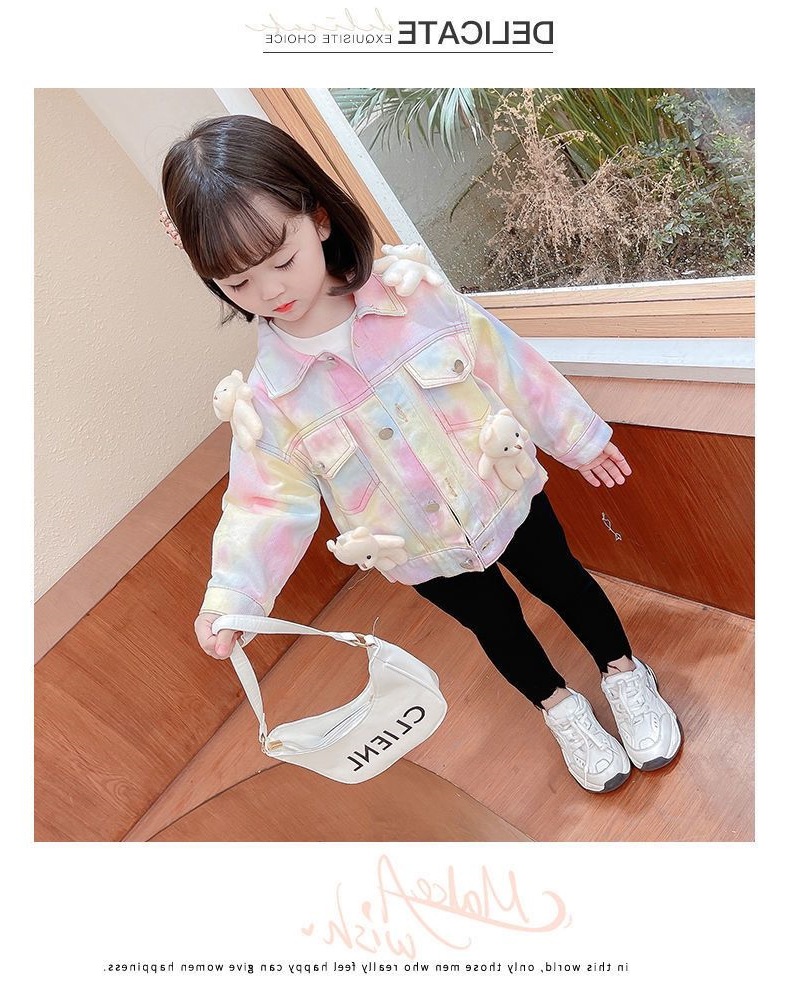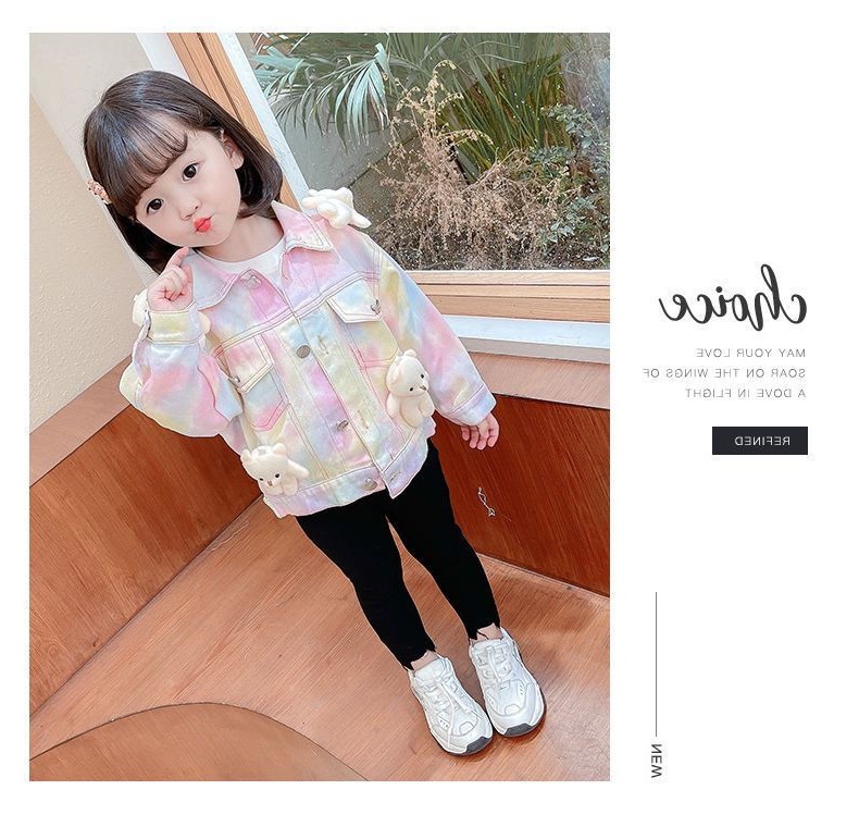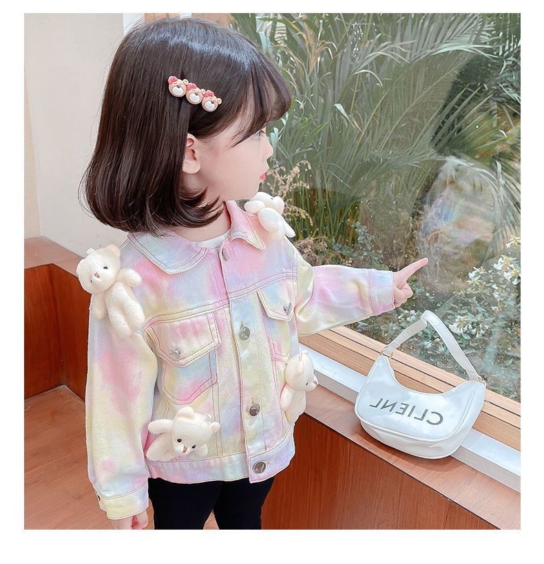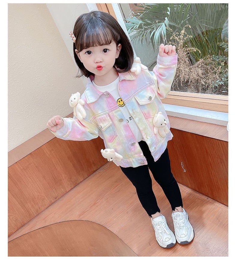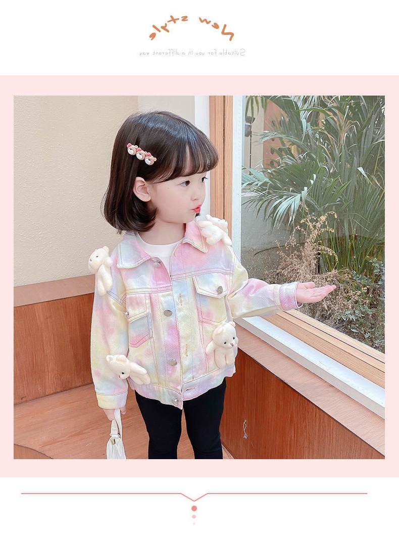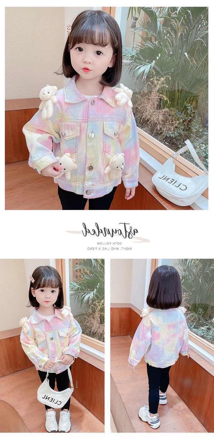 여아 코트 데님 스위트 베어 베이비 아동 가을 의류 새로운 인터넷 연예인 1-9 세 3 여자 아기 유행 재킷스토어 가기