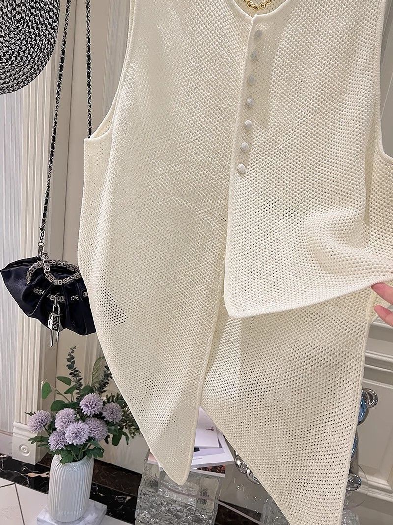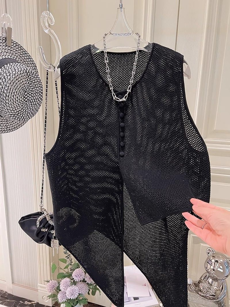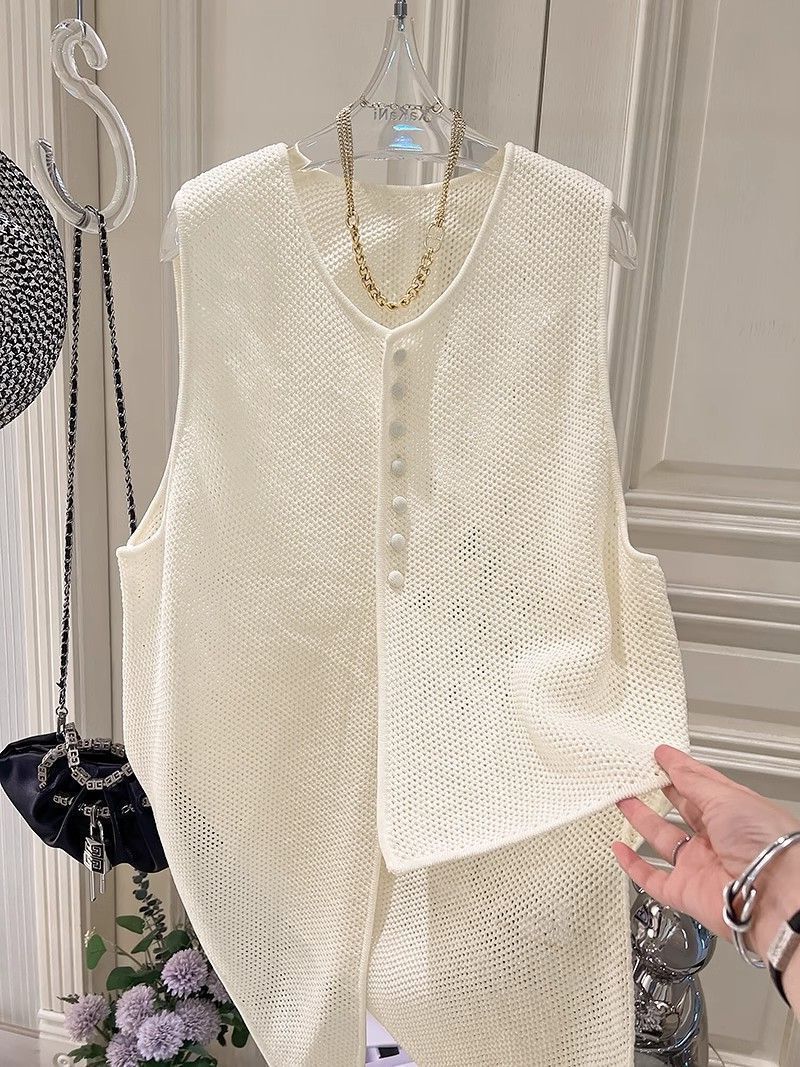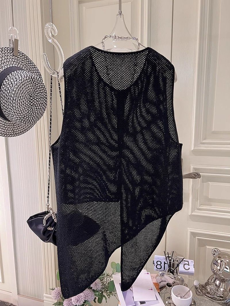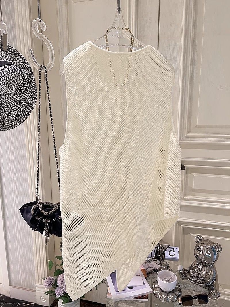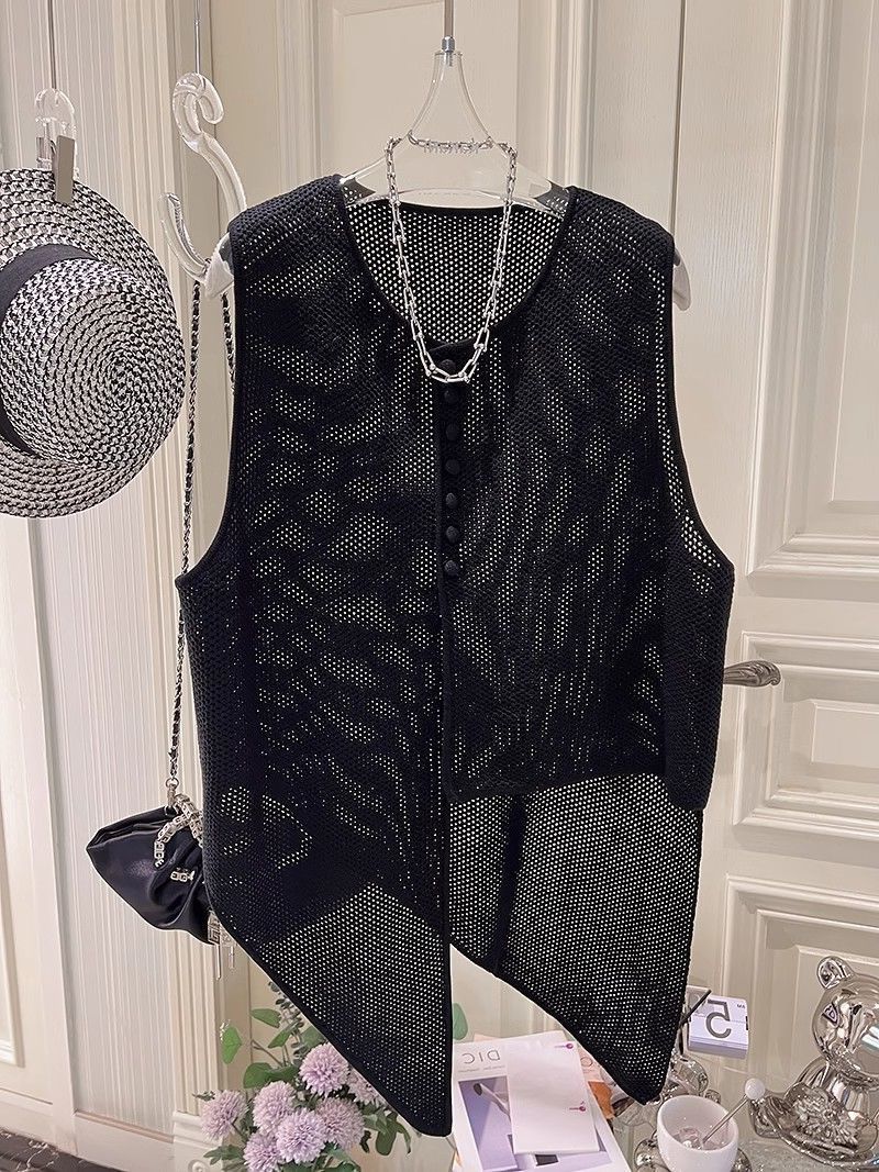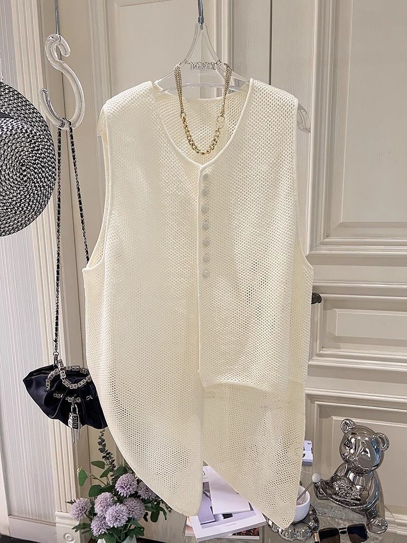 여름 패션 얇은 불규칙한 니트 스웨터 조끼 여성 프랑스 스타일 디자인 할로우 루즈 아우터 탑