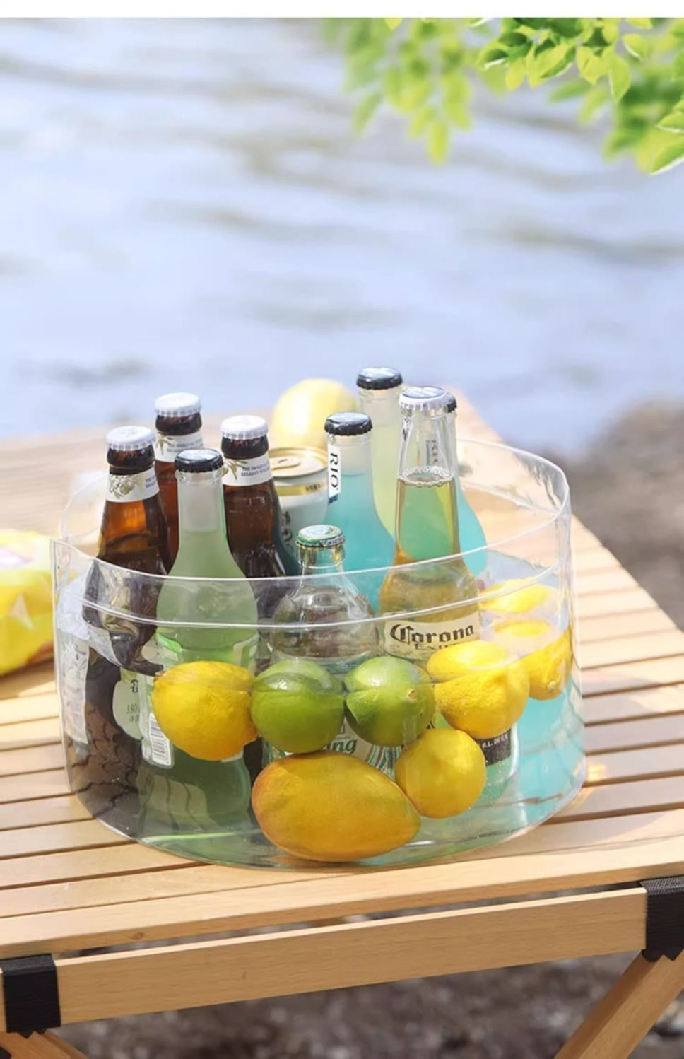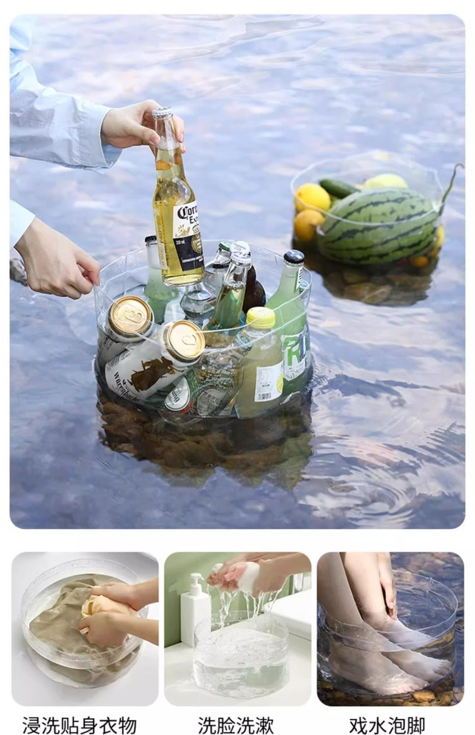 야외 접이식 세면대 휴대용 투명 여행 일회용 필수 용품 버킷 야외 여행 필수 신스토어 가기