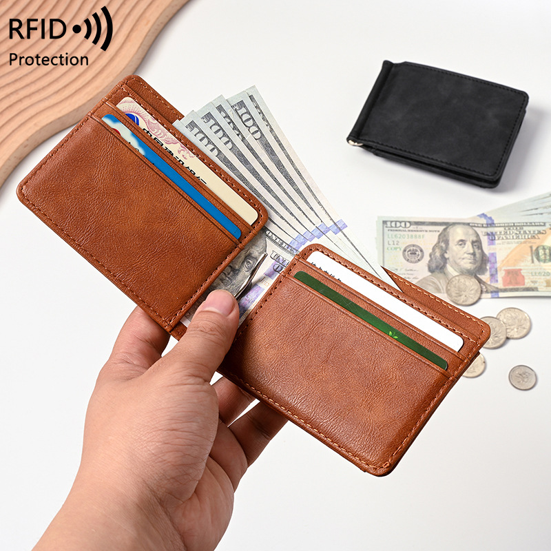 아마존 카드 홀더 국경 간 골드 클립 RFLD 남성 도난 방지 브러시 지갑 지갑 카드 홀더 카드 홀더 공장 아울렛