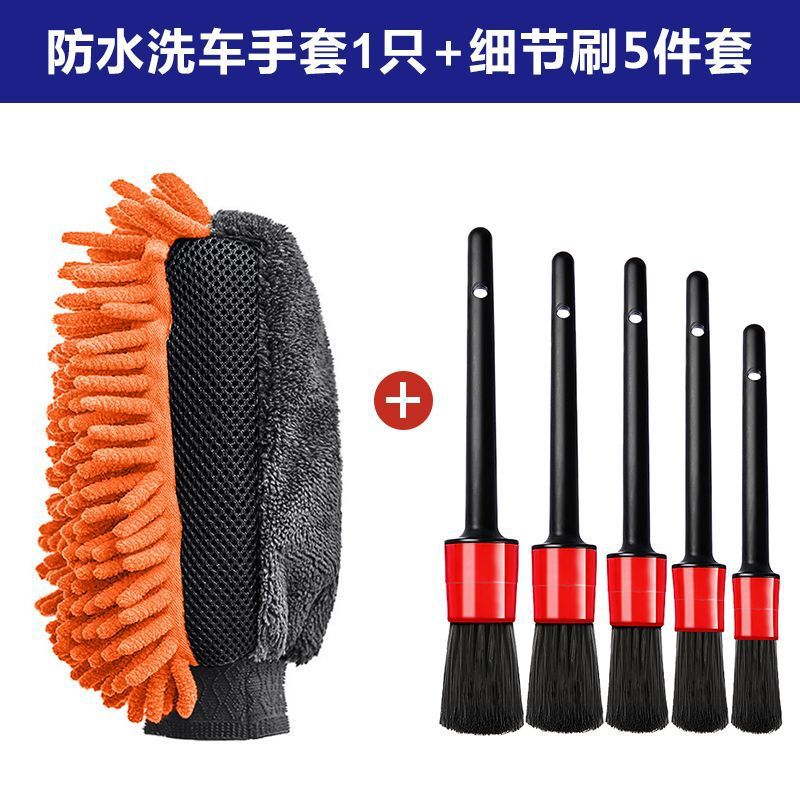 • 오렌지 방수 세차장갑 + 디테일 브러쉬 5종 세트---특가 판매
