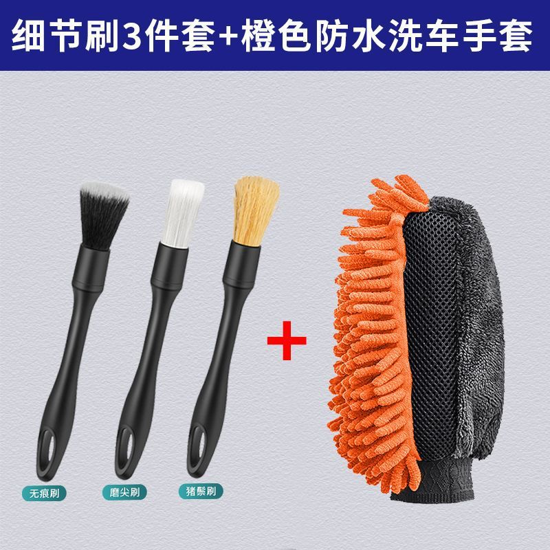 • 오렌지 방수 세차장갑 + 디테일 브러쉬 3종 세트---특가 판매