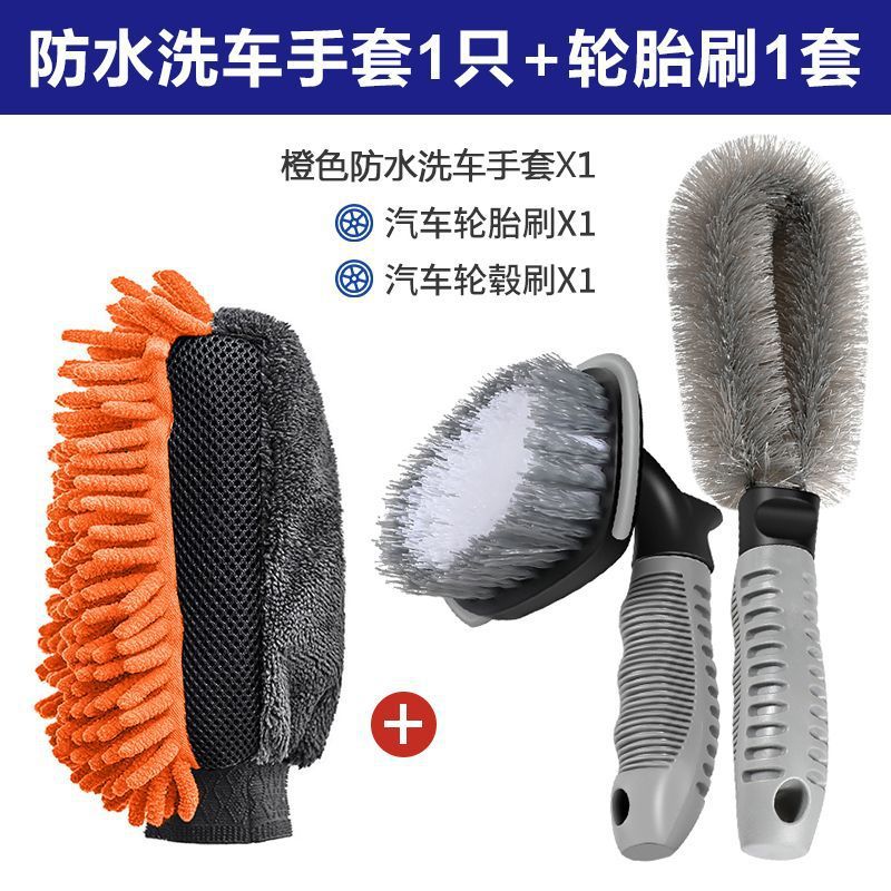 • 오렌지색 방수 세차장갑 + 타이어 브러쉬 2종 세트---특가 판매