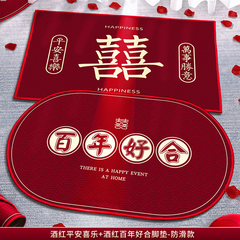 • 와인레드 평화와 기쁨 + 와인레드 백년의 조화 - 미끄럼방지 스타일 [80*50cm]