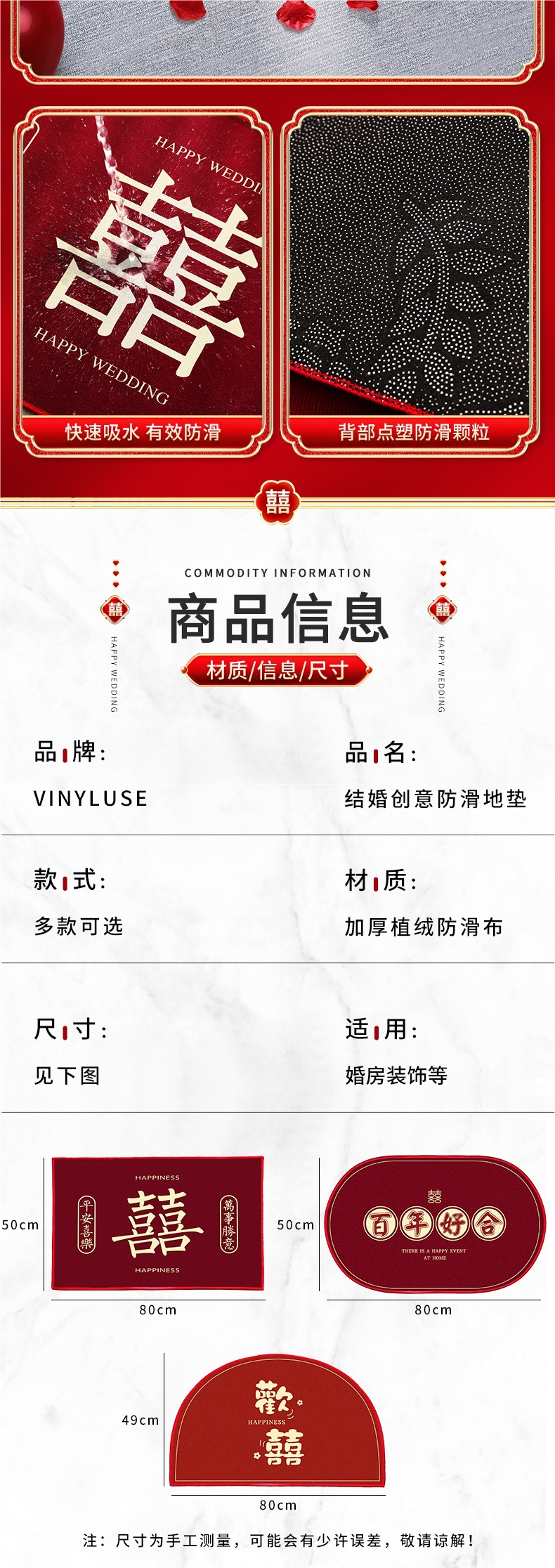 • 버건디 웨딩-직사각형 미끄럼방지 스타일 [80*50cm]
