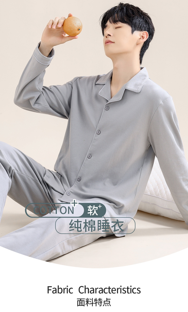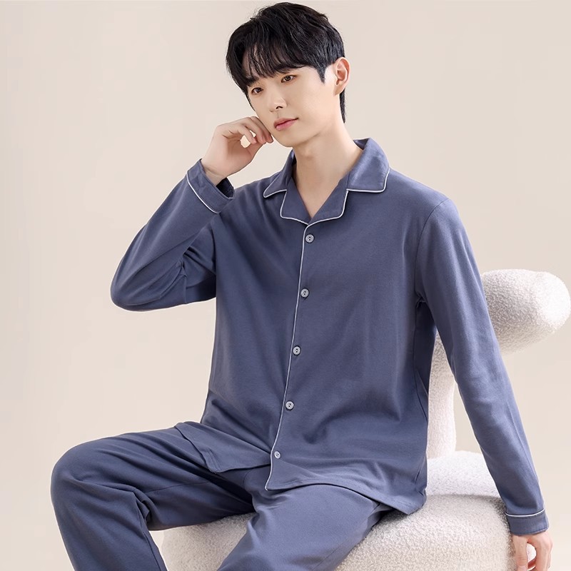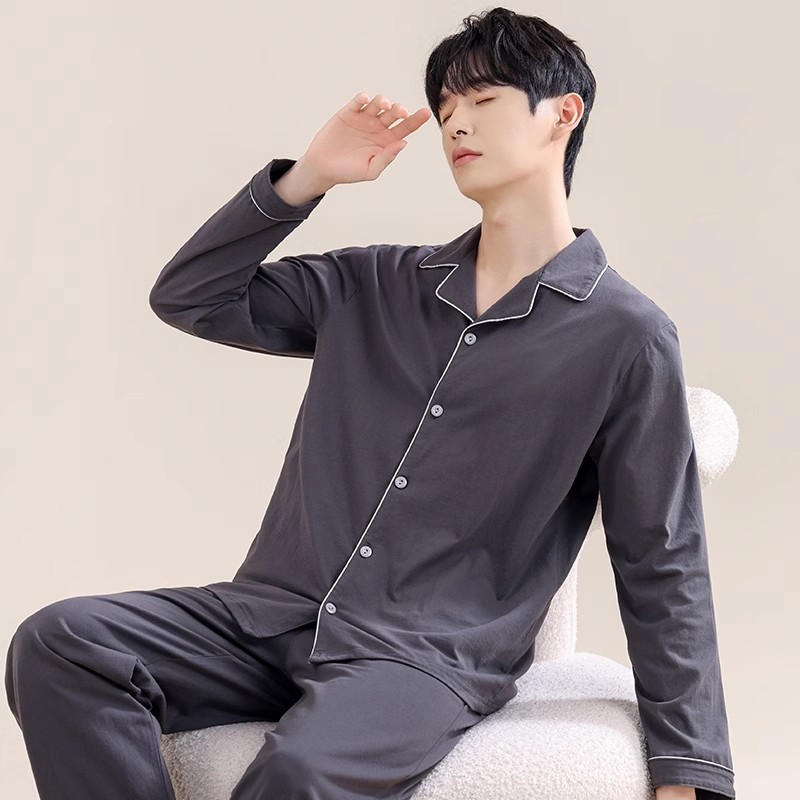 남성용 파자마 남성용 면 홈 의류 긴 소매 바지 카디건 2025 새로운 100% 면 남성용 얇은 세트