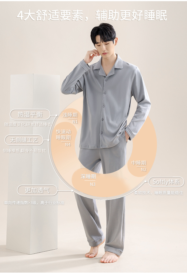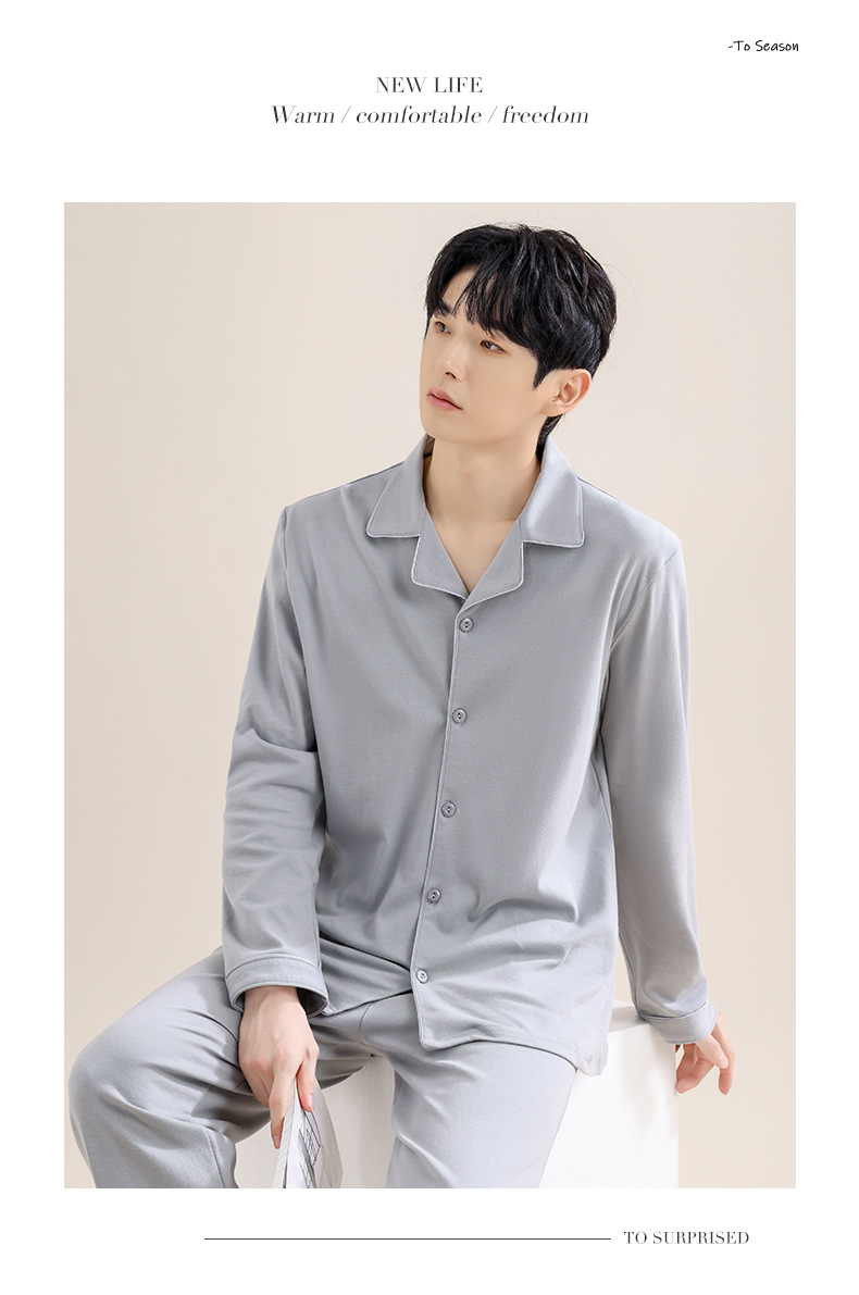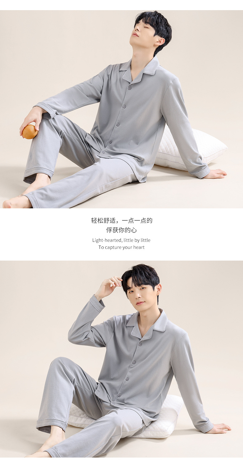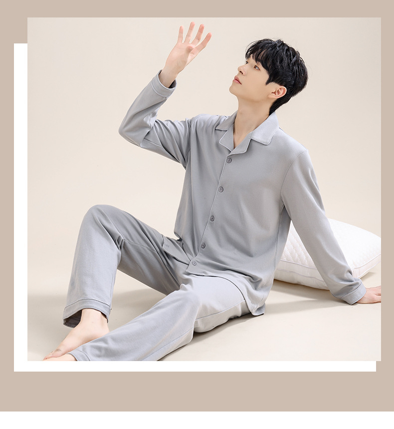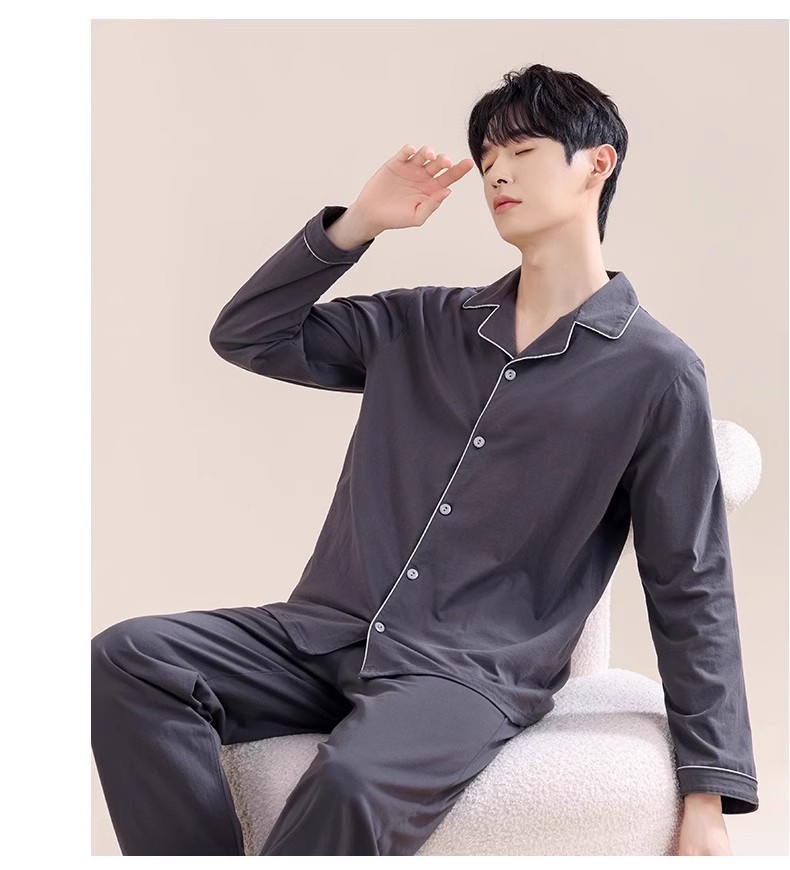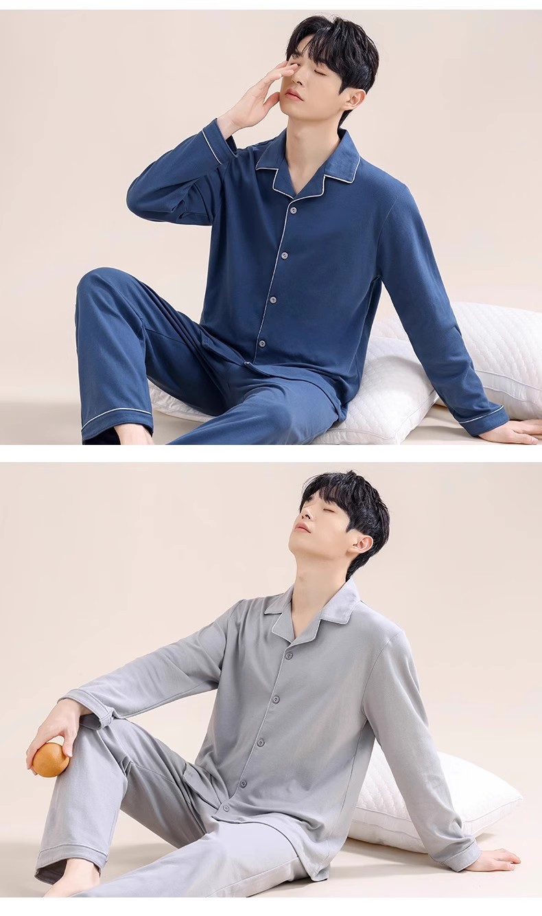 남성용 파자마 남성용 면 홈 의류 긴 소매 바지 카디건 2025 새로운 100% 면 남성용 얇은 세트스토어 가기