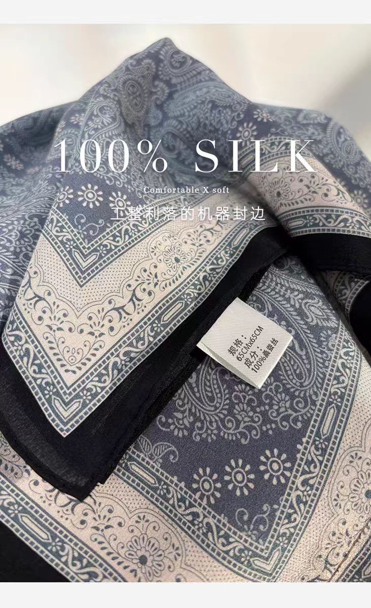 100% 뽕나무 실크 썬 캐슈 과일 실크 크레페 드 친 스카프 여성 봄 여름 가을 하이 엔드 패션 빈티지 스카프스토어 가기