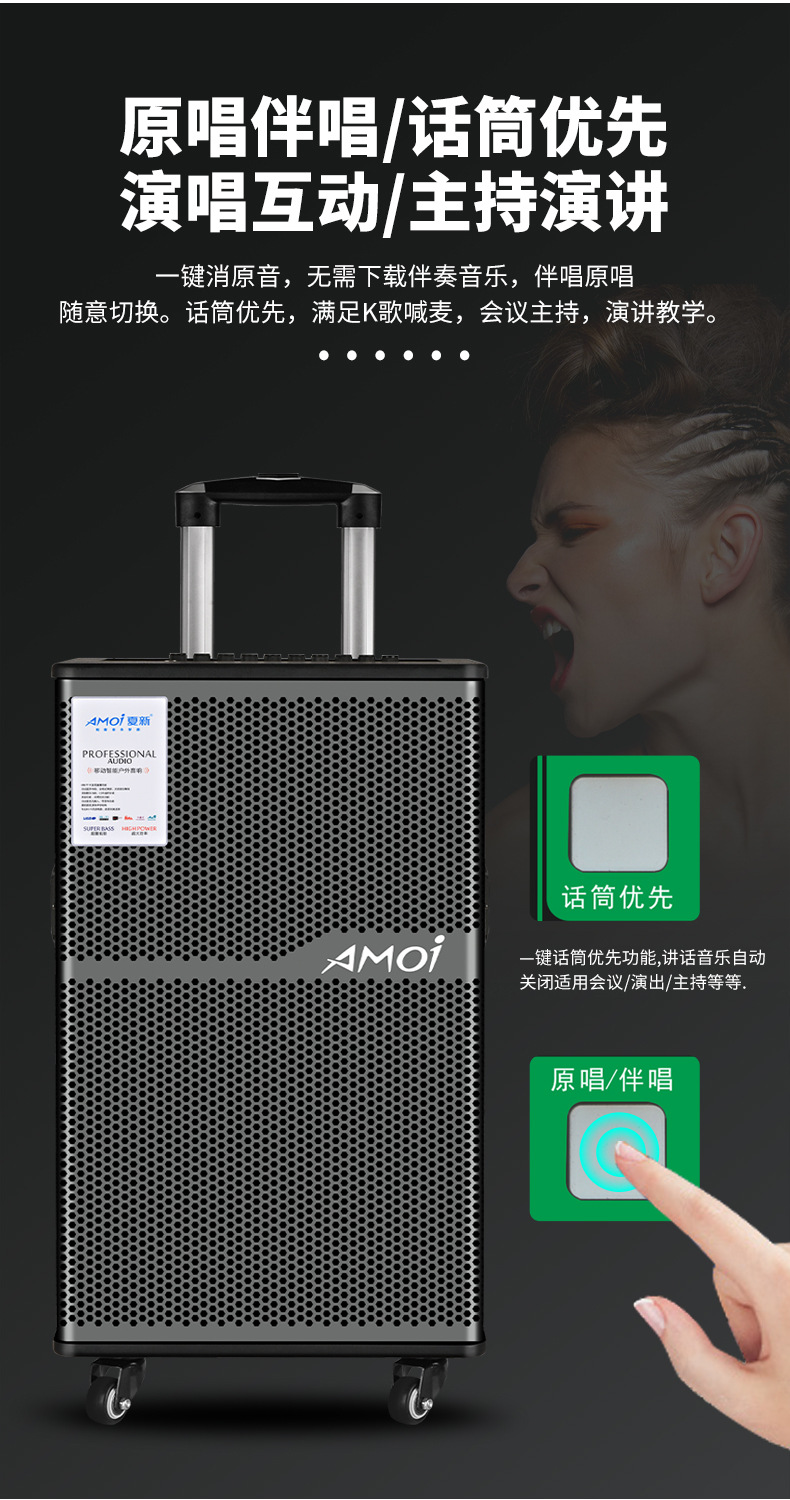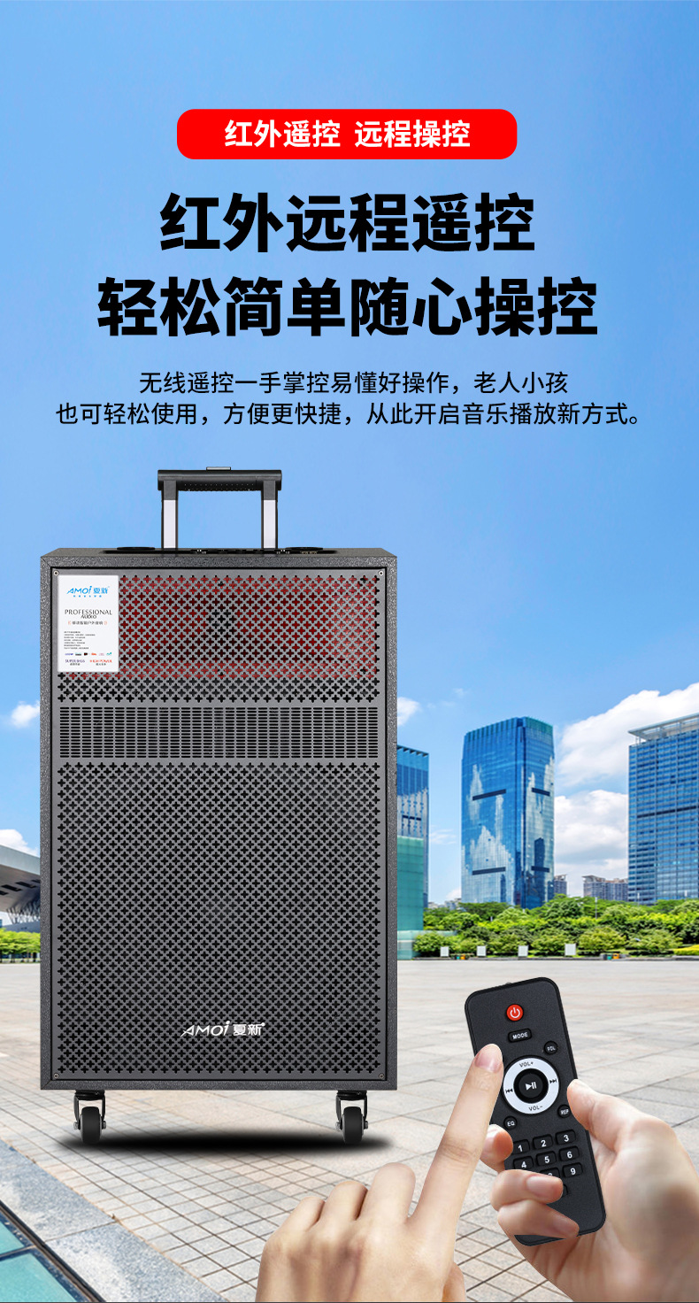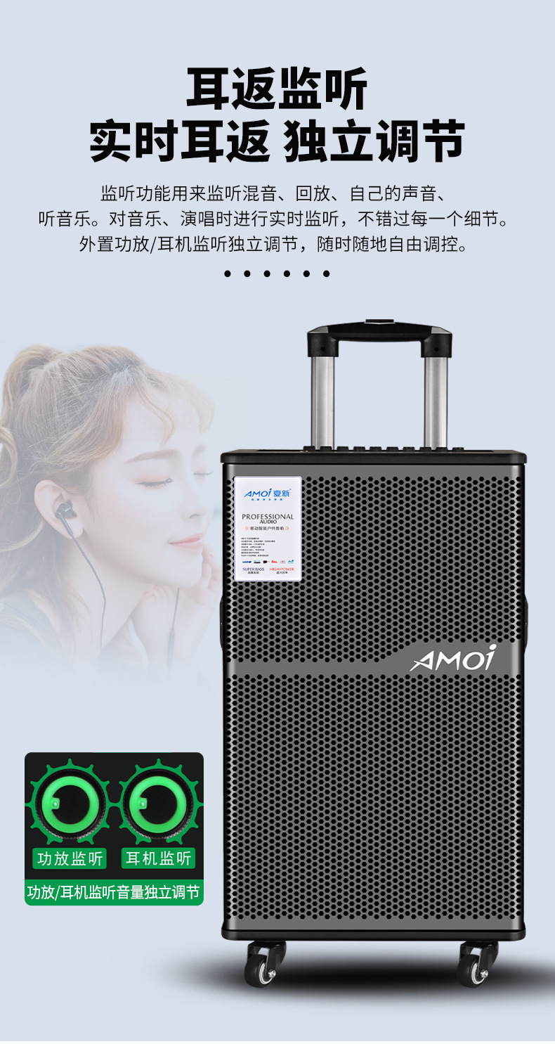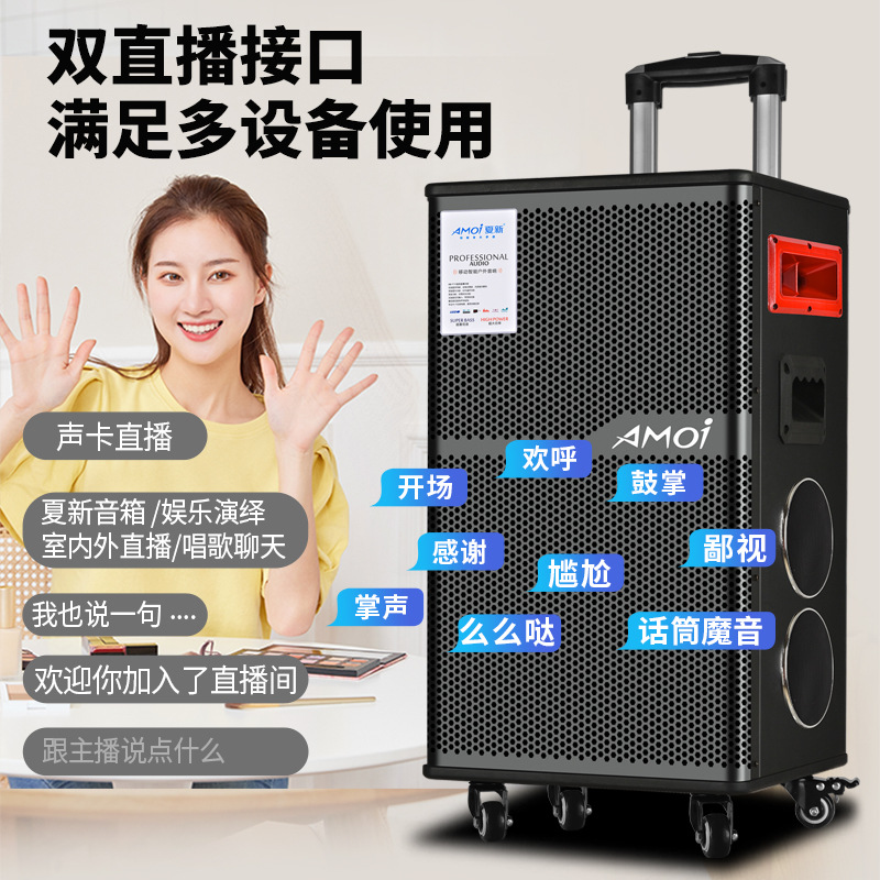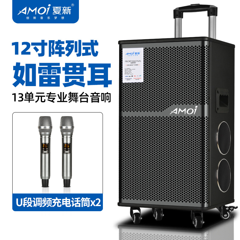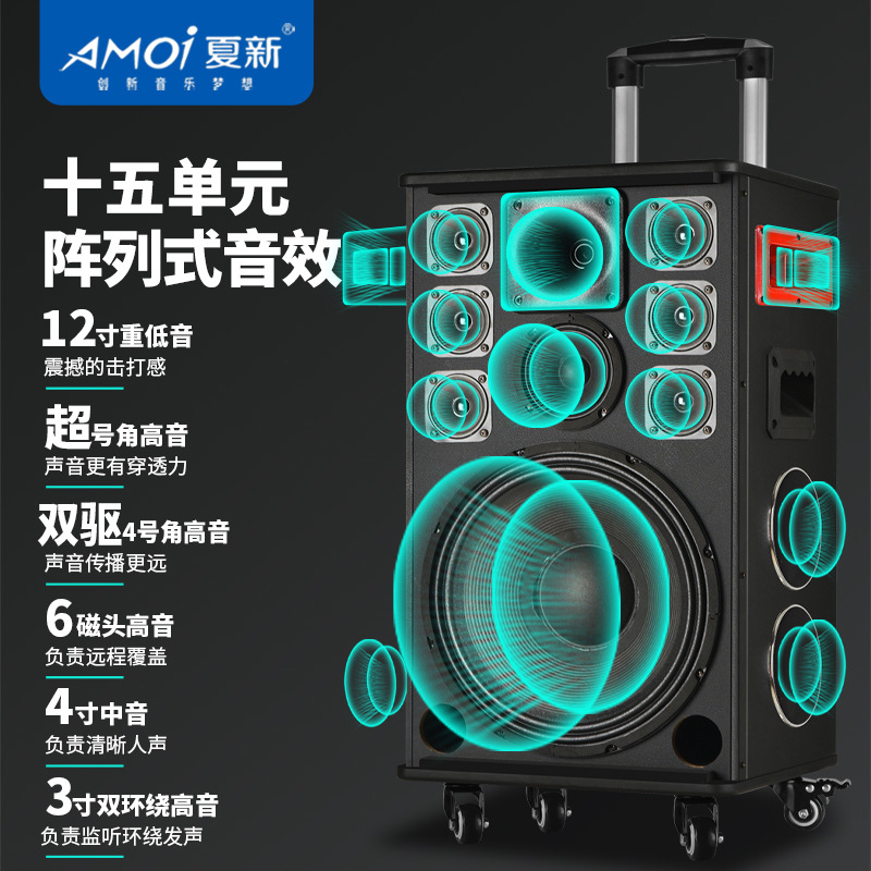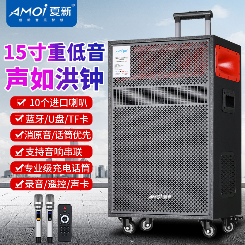 Amoi 15inch 스퀘어 댄스 오디오 야외 중저음 블루투스 초대형 목재 트롤리 노래 공연 스피커 홈