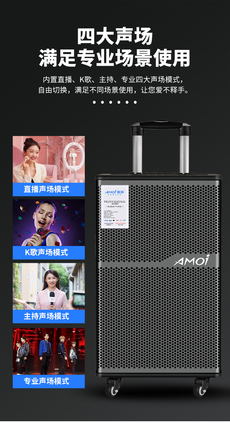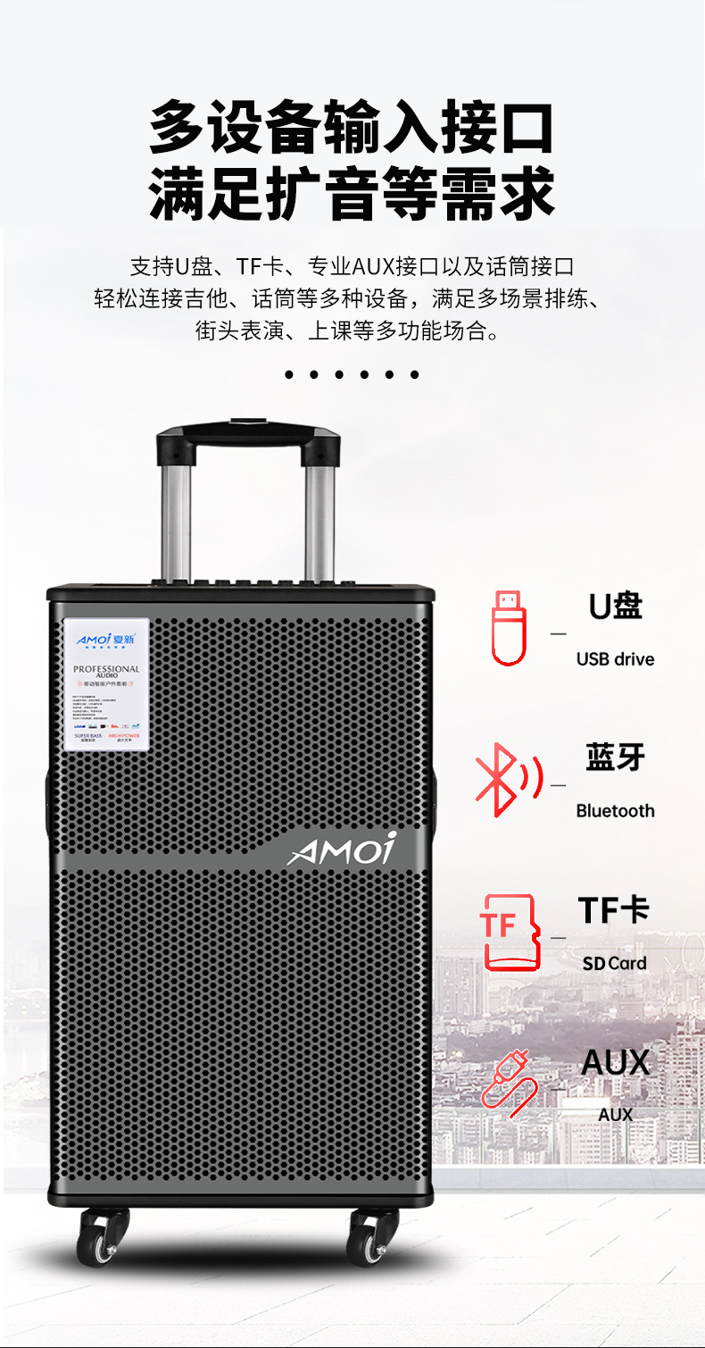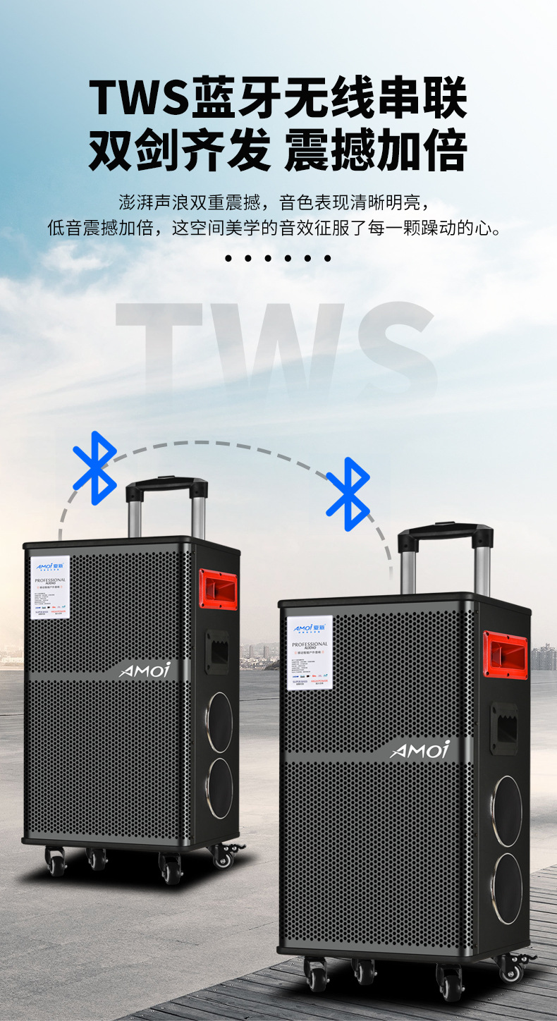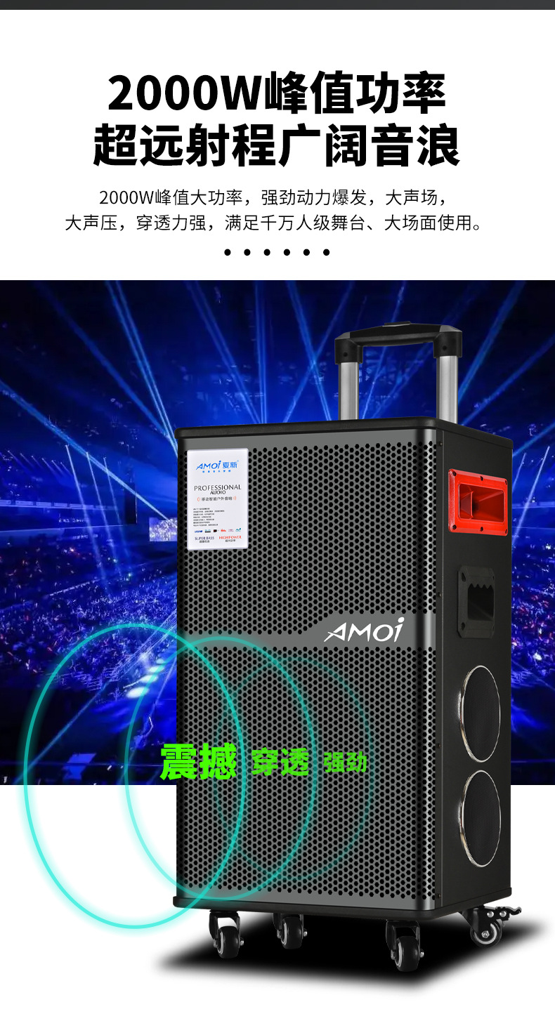 Amoi 15inch 스퀘어 댄스 오디오 야외 중저음 블루투스 초대형 목재 트롤리 노래 공연 스피커 홈