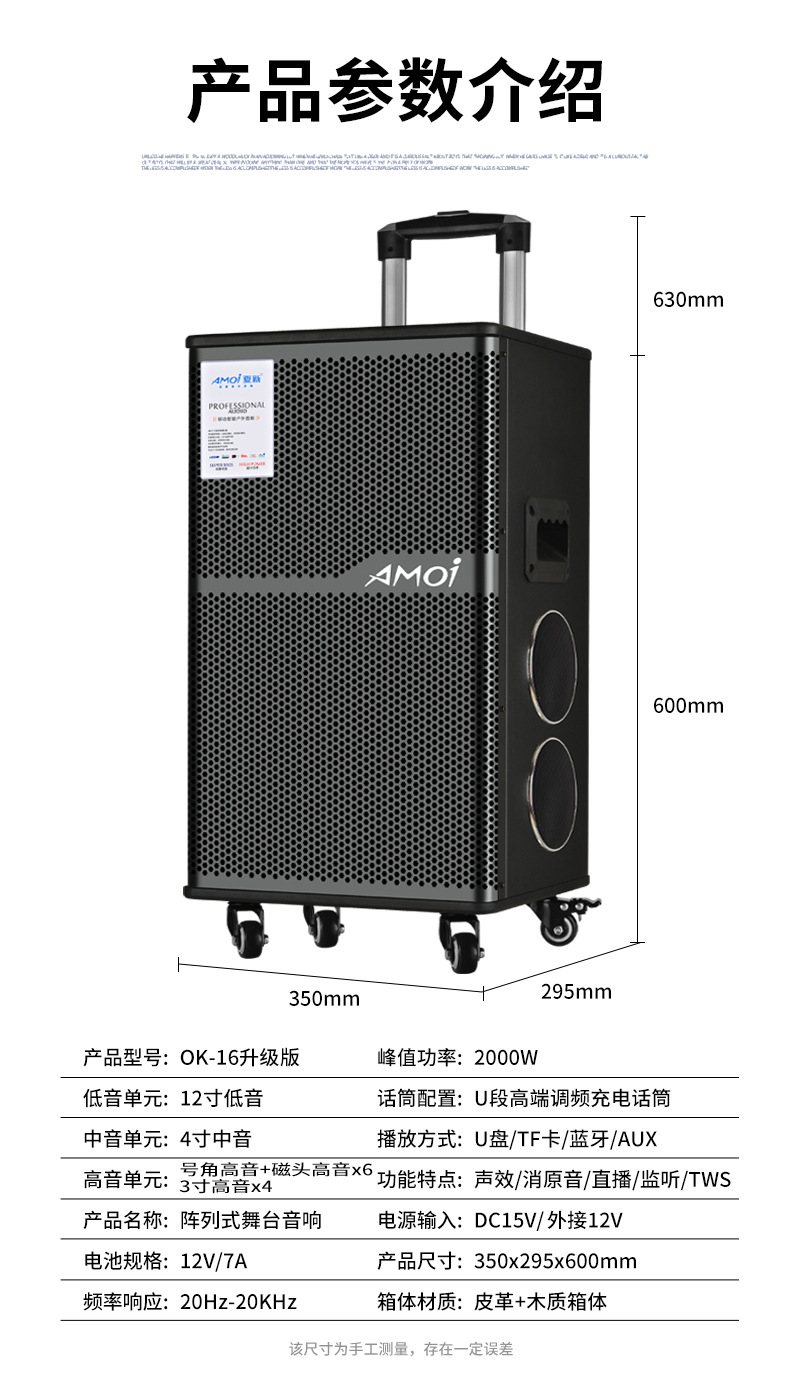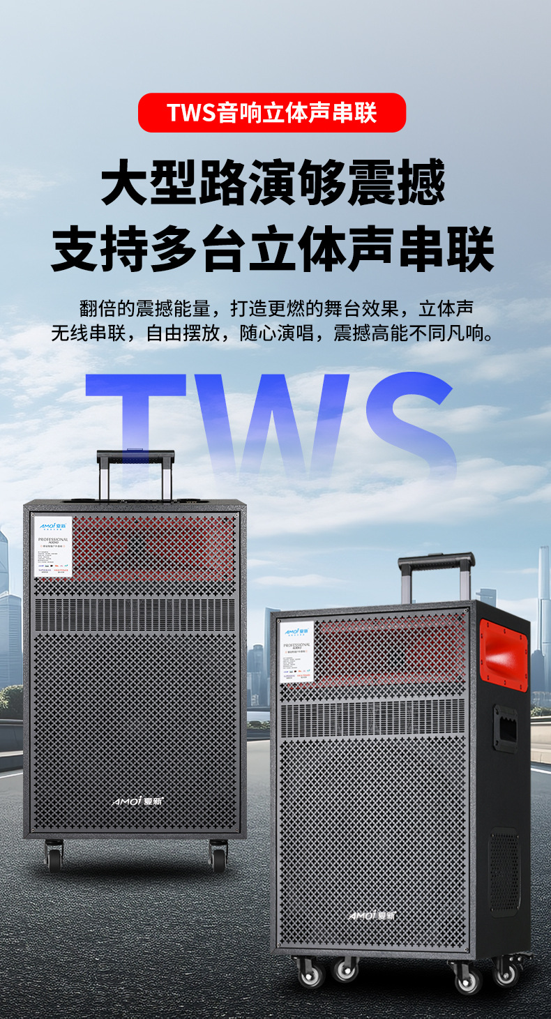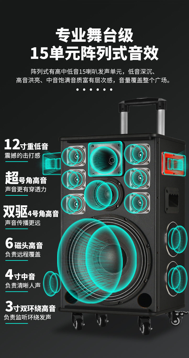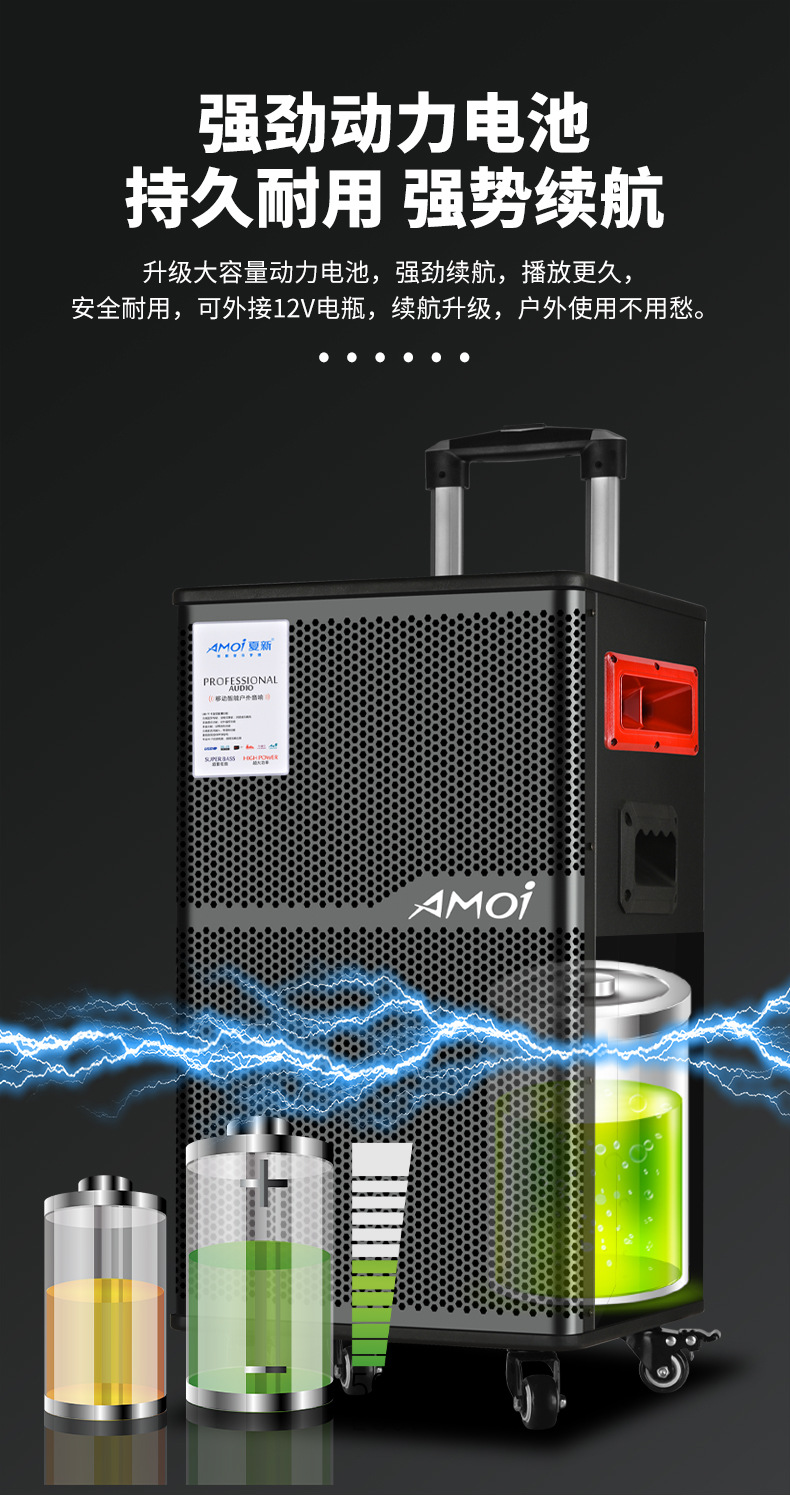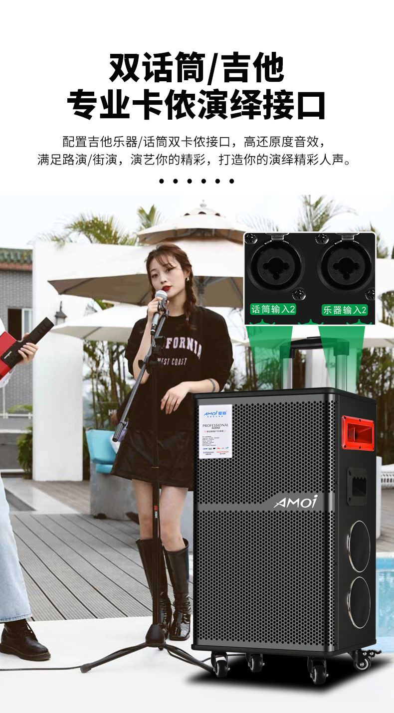 Amoi 15inch 스퀘어 댄스 오디오 야외 중저음 블루투스 초대형 목재 트롤리 노래 공연 스피커 홈