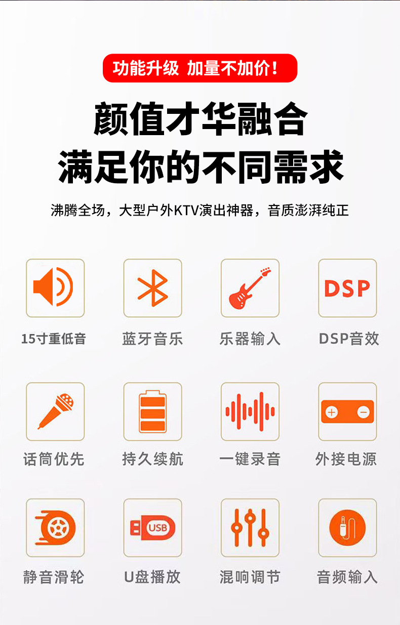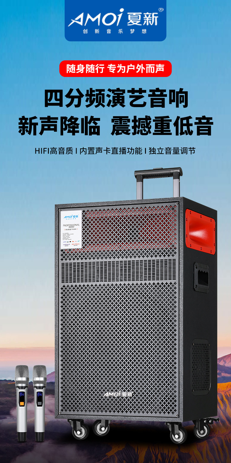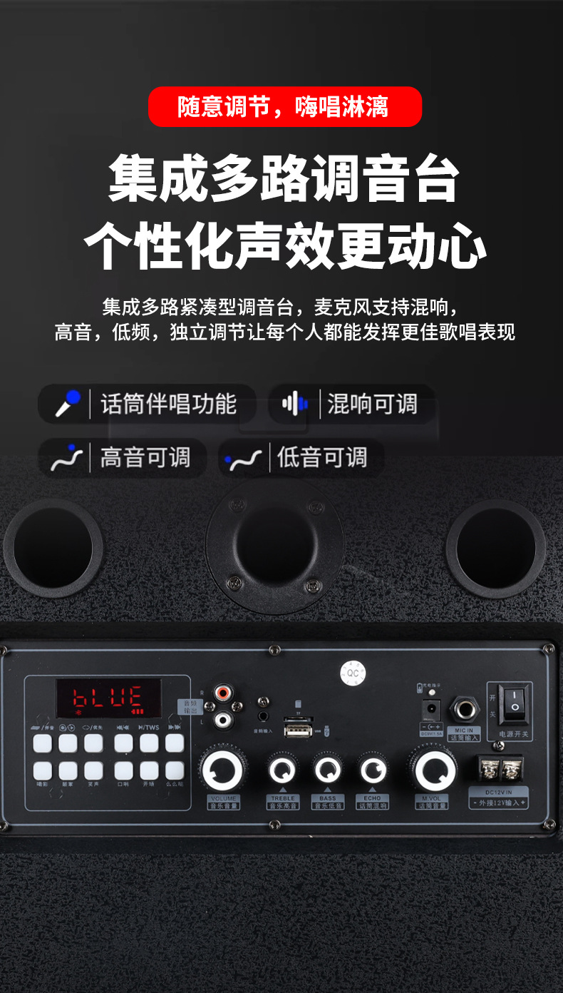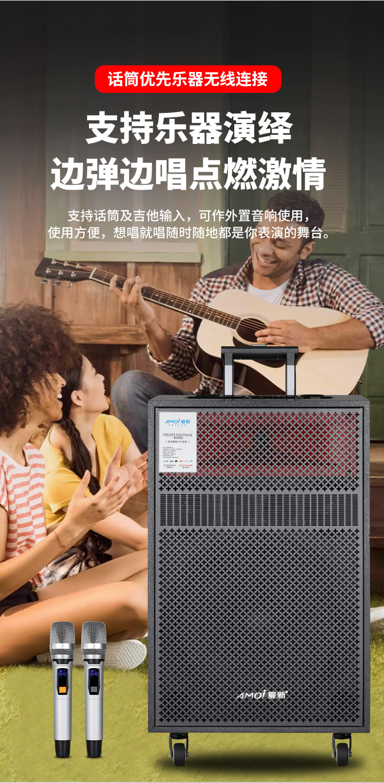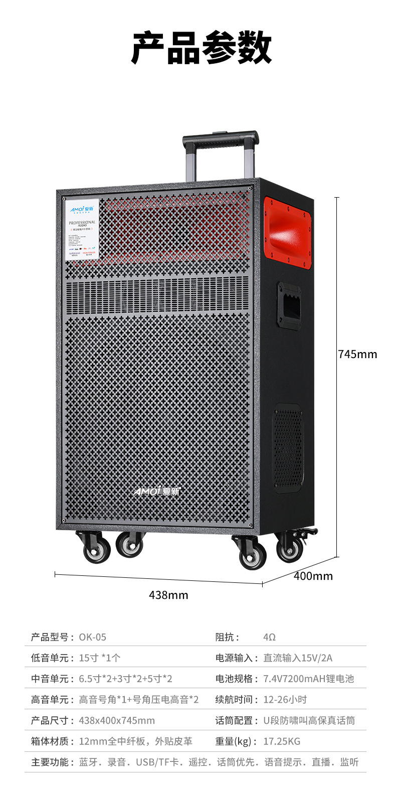 Amoi 15inch 스퀘어 댄스 오디오 야외 중저음 블루투스 초대형 목재 트롤리 노래 공연 스피커 홈