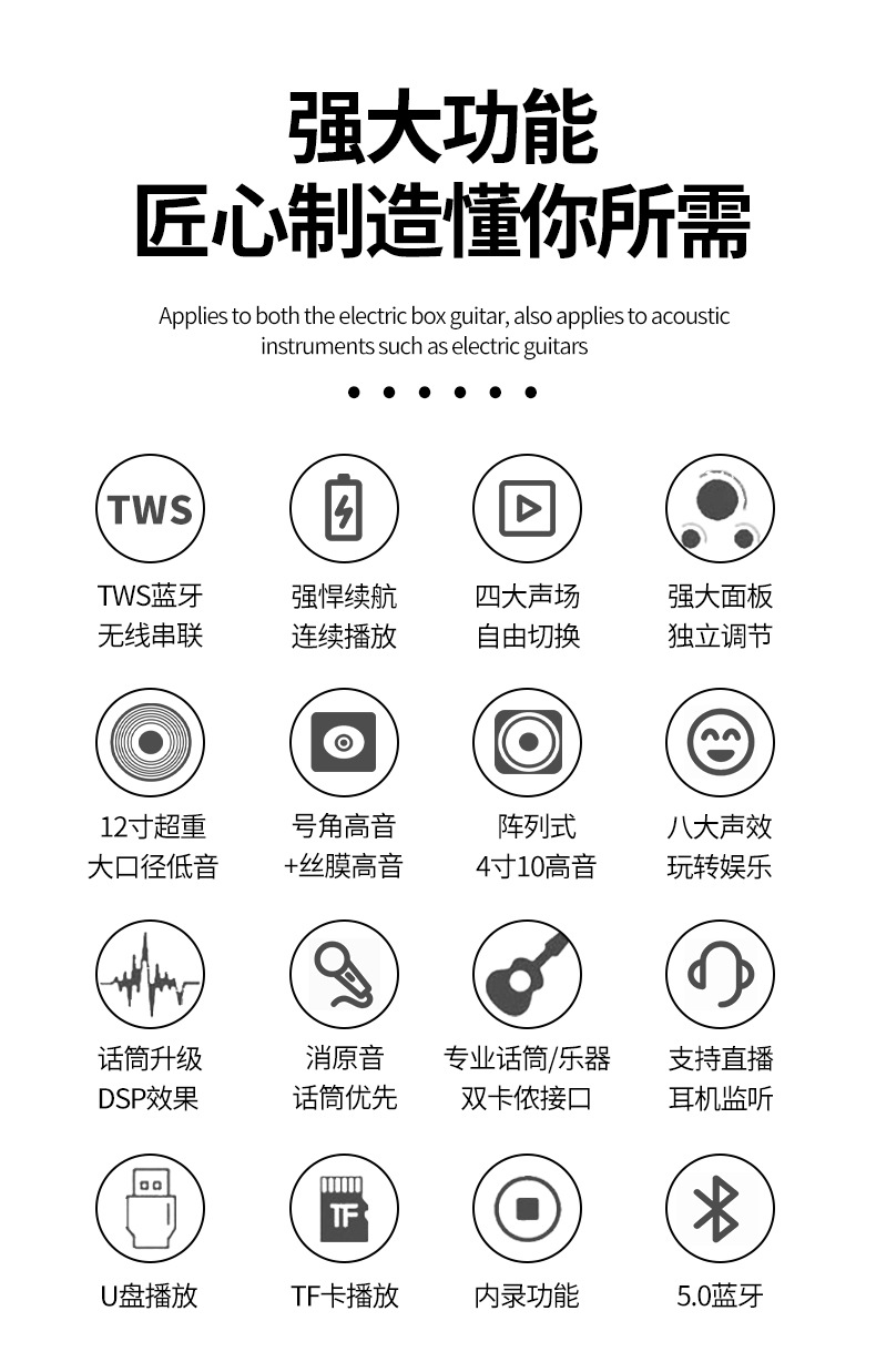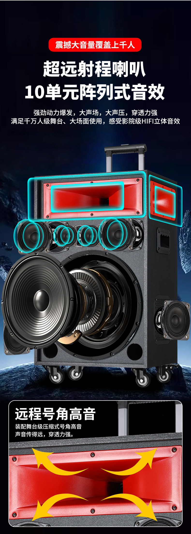 • 15inch 우퍼 라이브 모니터링, 매우 긴 배터리 수명 12-26시간, 듀얼 마이크