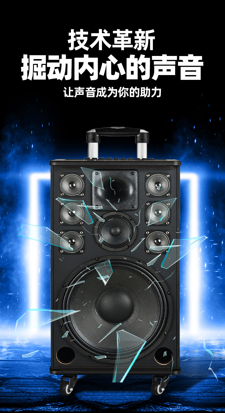 Amoi 15inch 스퀘어 댄스 오디오 야외 중저음 블루투스 초대형 목재 트롤리 노래 공연 스피커 홈스토어 가기
