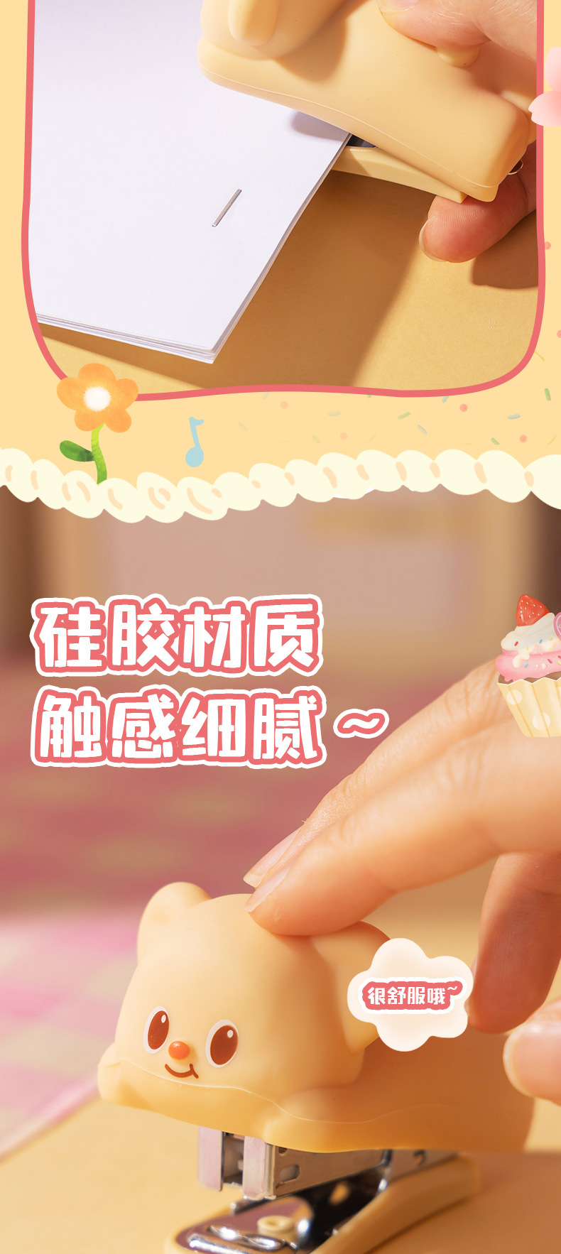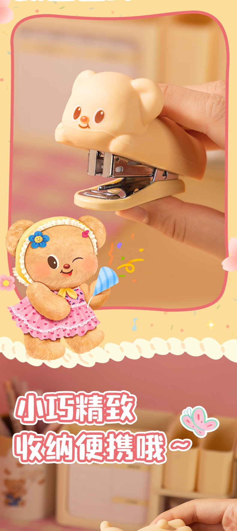 델리 HY199 버터 베어 미니 스테이플러 세트 학생들을위한 휴대용 만화 사무실 문서 바인딩 머신