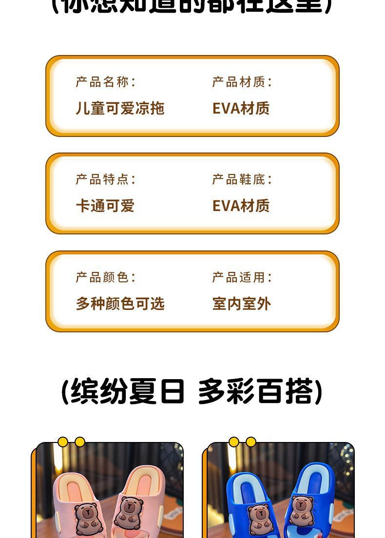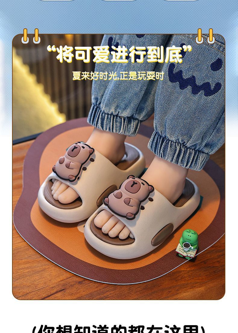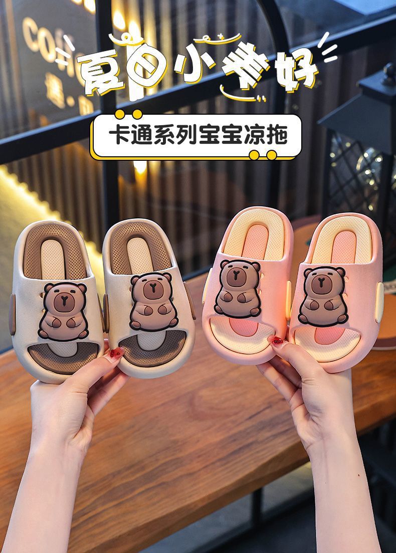 어린이를위한 Kapibara 슬리퍼 여름 소녀 미끄럼 방지 부드러운 바닥 목욕 홈 만화 실내 아기 귀여운 소년