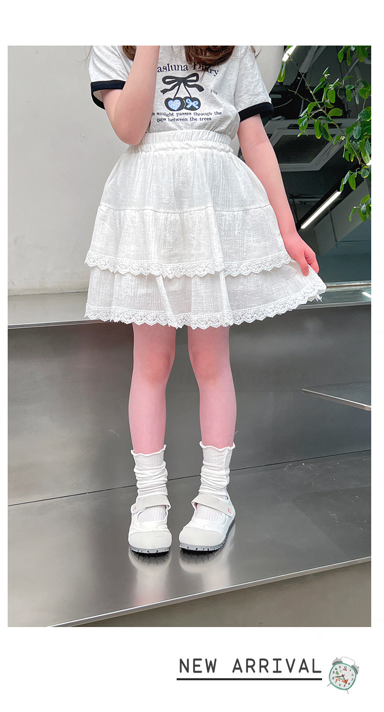어린이 레이스 케이크 스커트 소녀 흰색 짧은 치마 큰 어린이 스타일 스커트 소녀 2025 여름 새로운 스타일