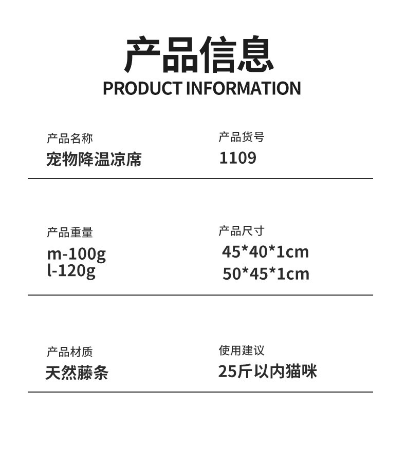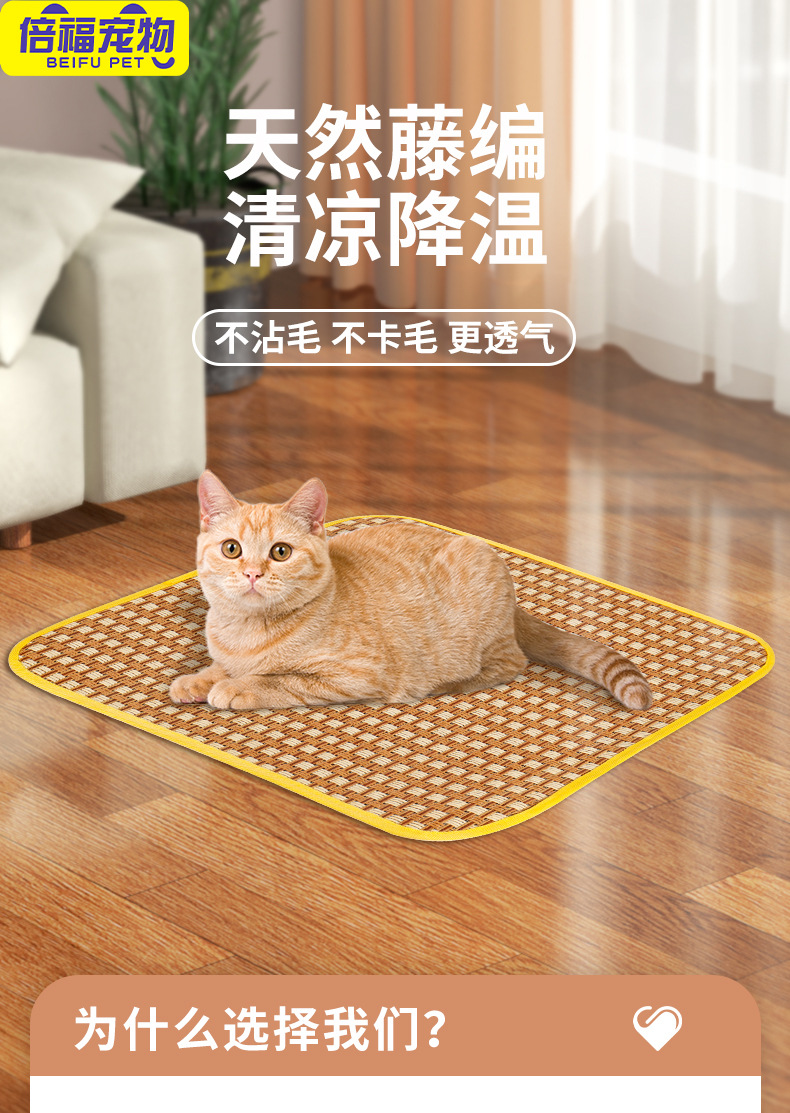 1109猫咪藤编降温凉席,夏日必备萌宠好物