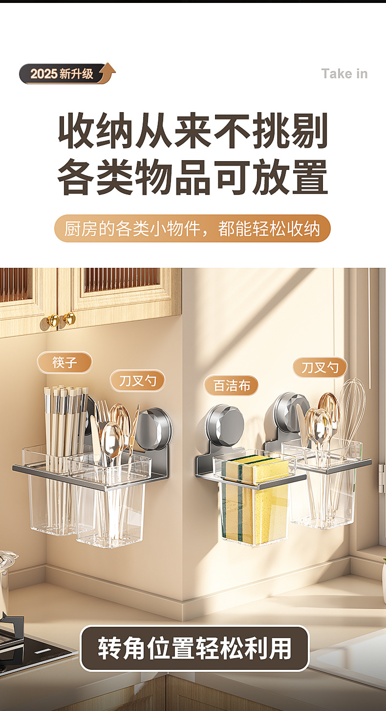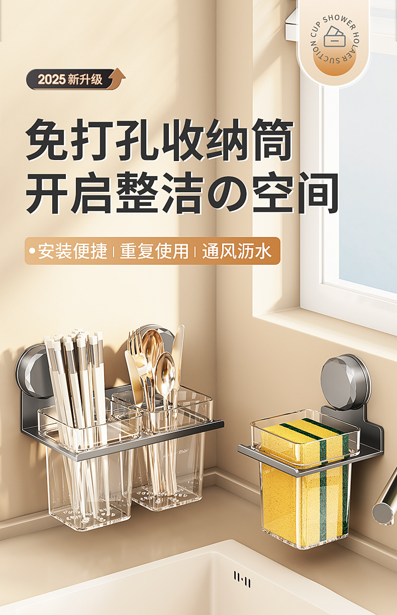 국경 간 빨판 젓가락 보관 상자 벽걸이 형 주방 가정용 다기능 펀치없는 젓가락 튜브 통합 보관 랙