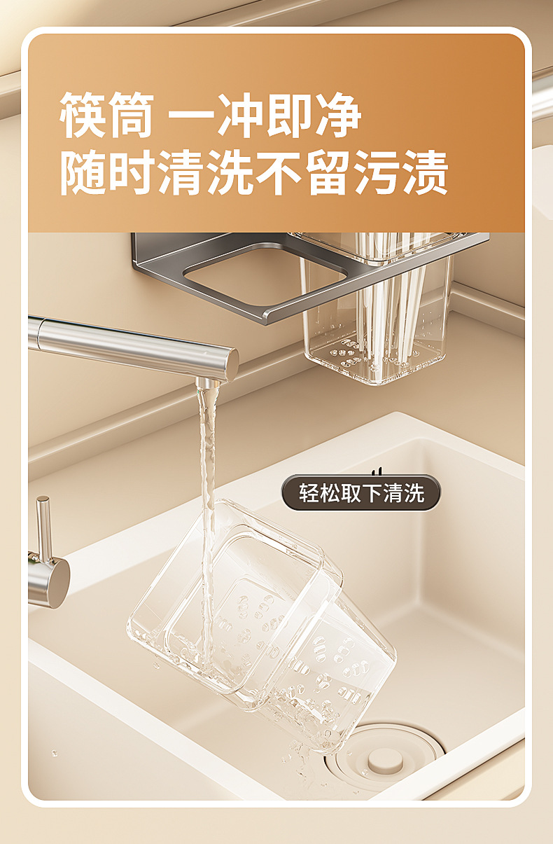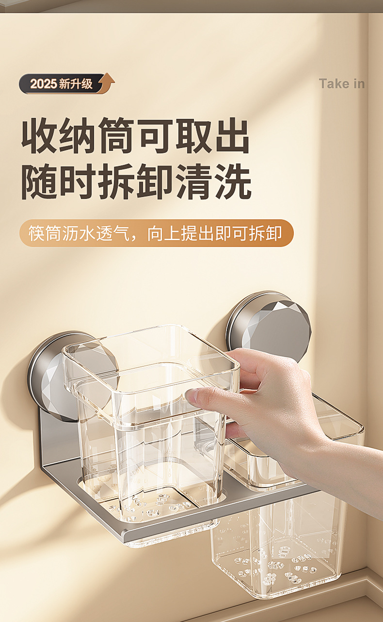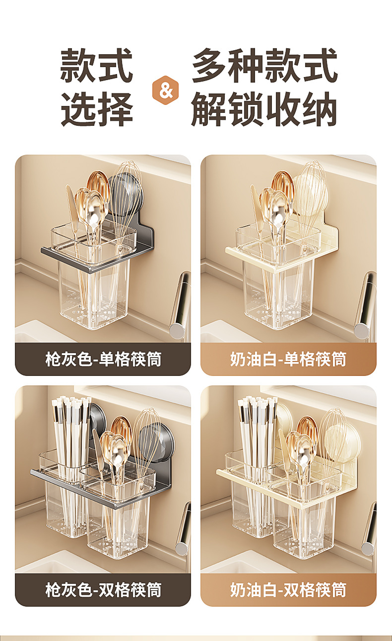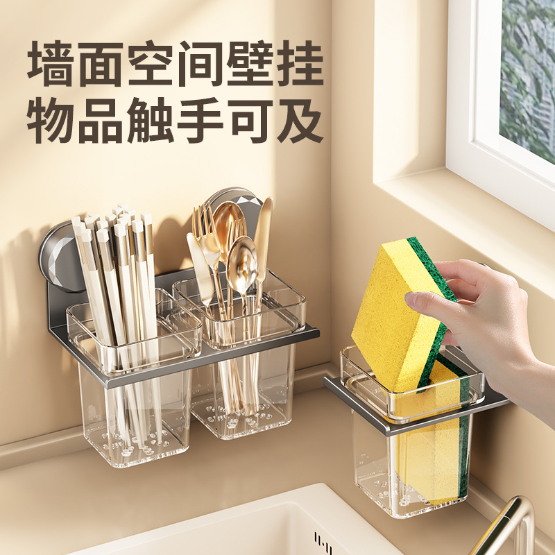 국경 간 빨판 젓가락 보관 상자 벽걸이 형 주방 가정용 다기능 펀치없는 젓가락 튜브 통합 보관 랙스토어 가기