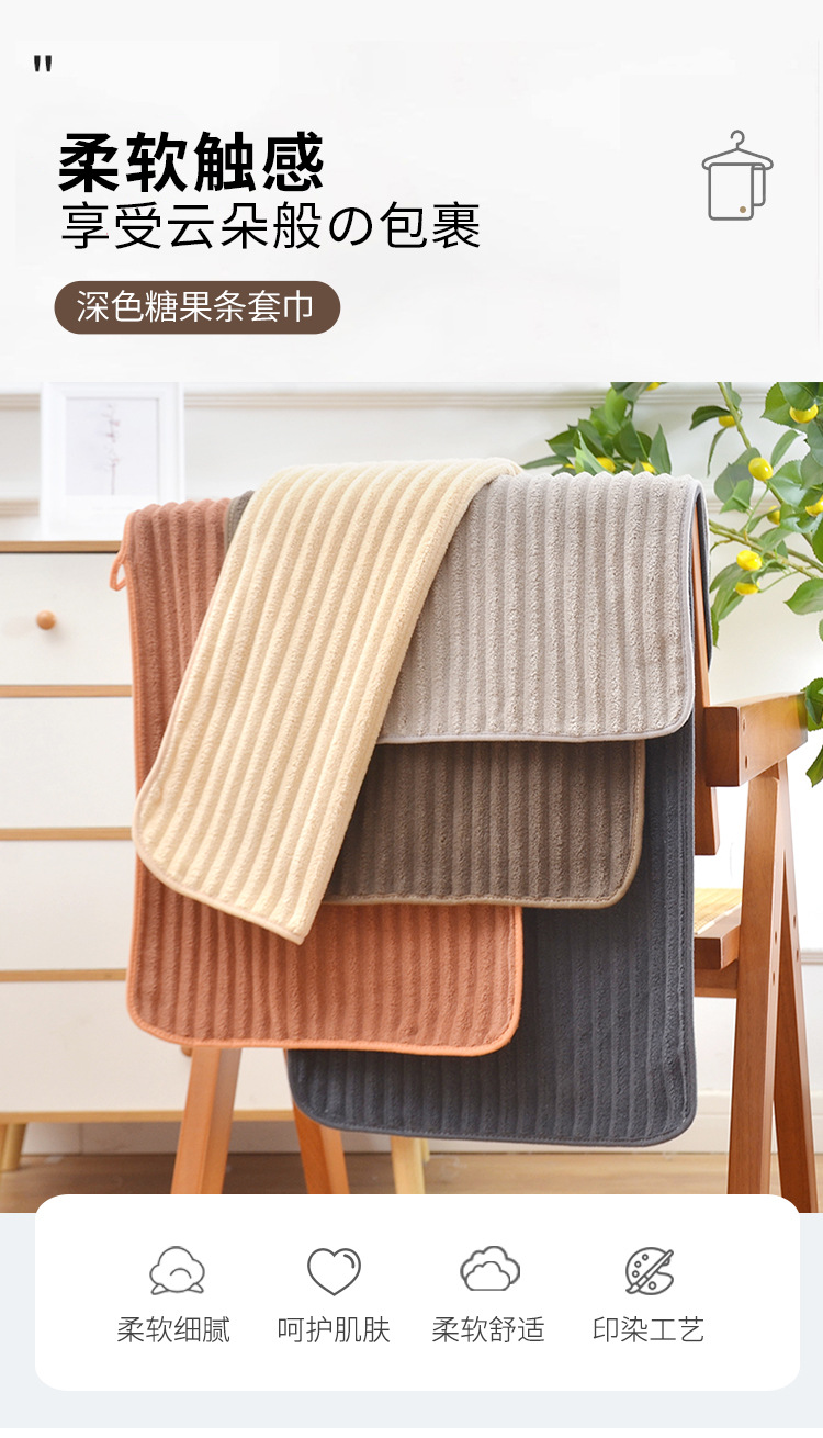 캔디 스트립 세트 타월 패션 홈 매일 사용 다크 목욕 타월 산호 양털 두꺼운 흡수성 소프트 페이스 워시 타월