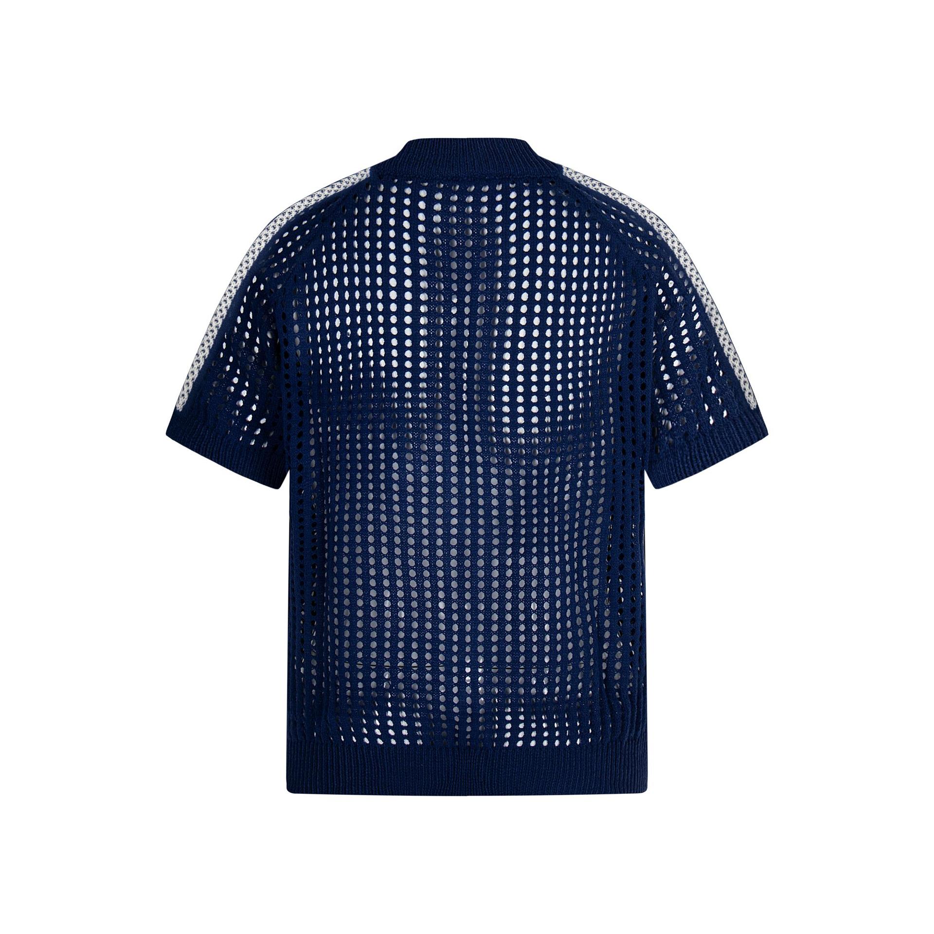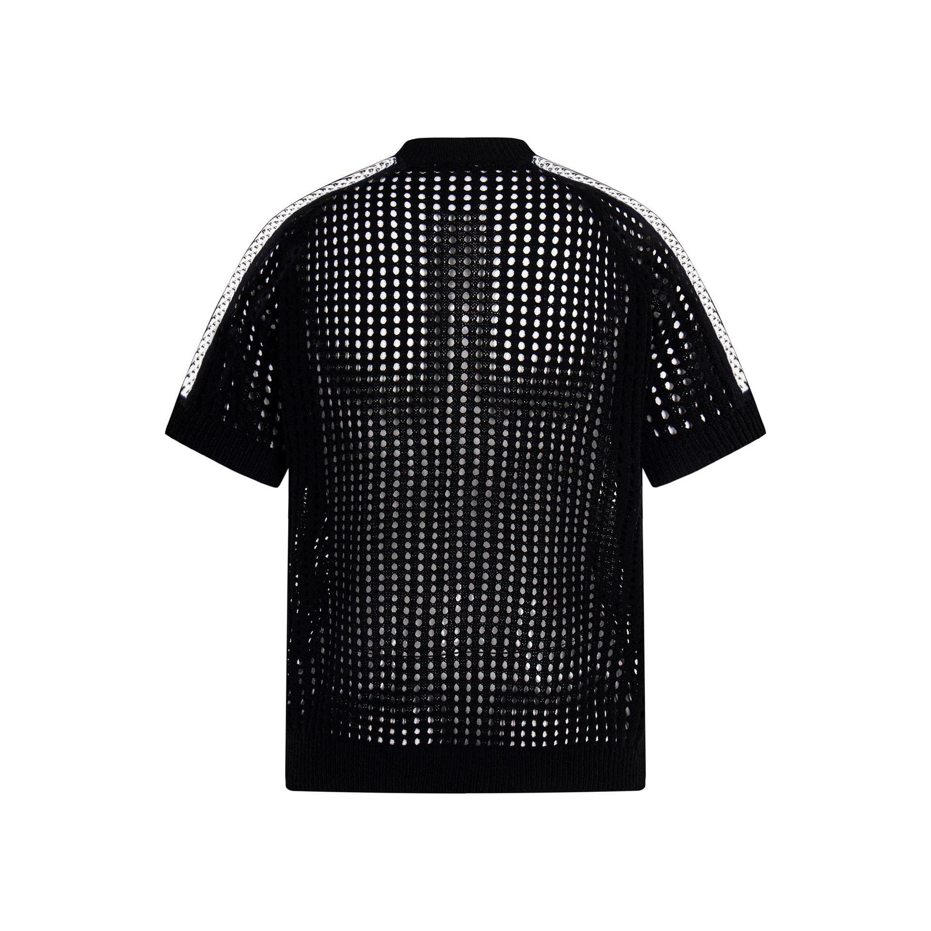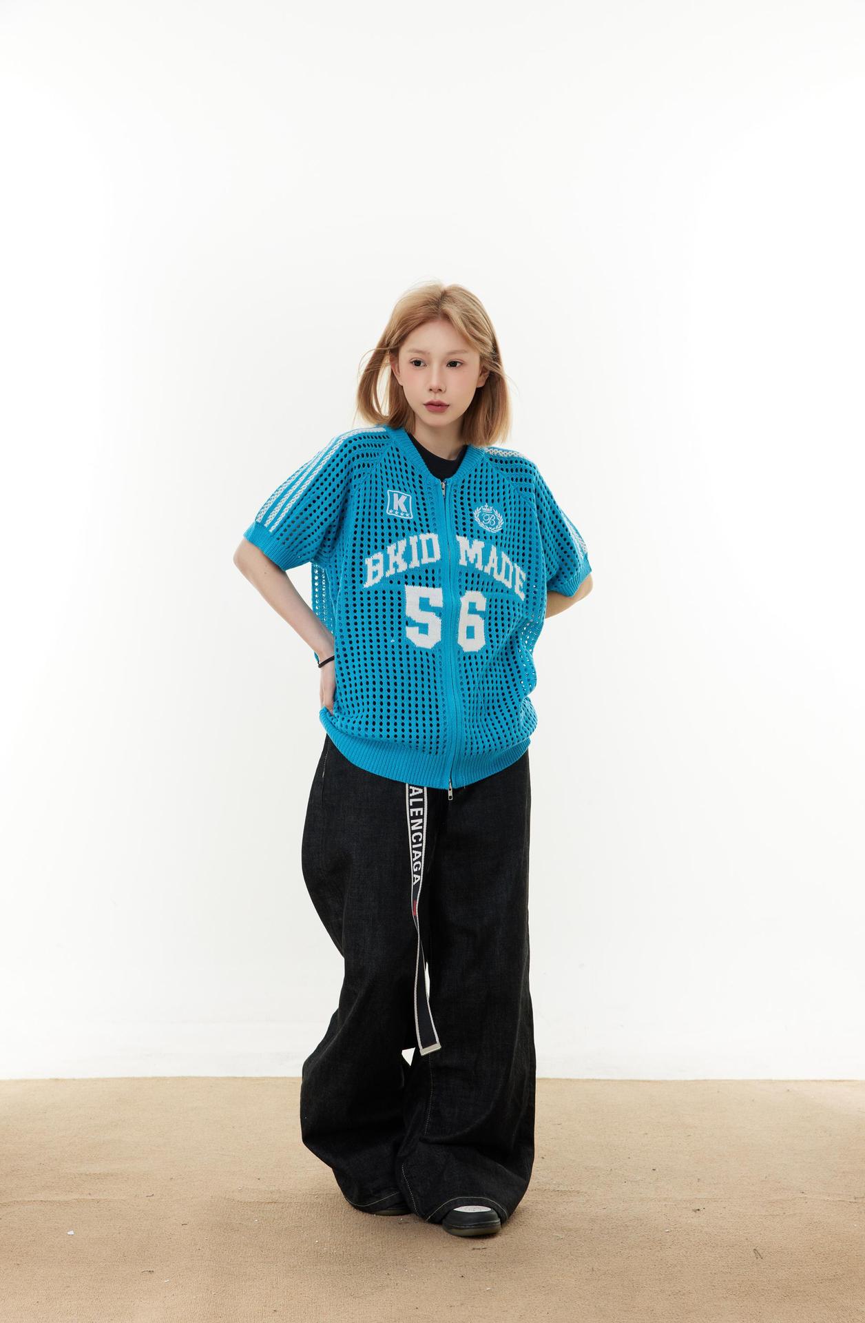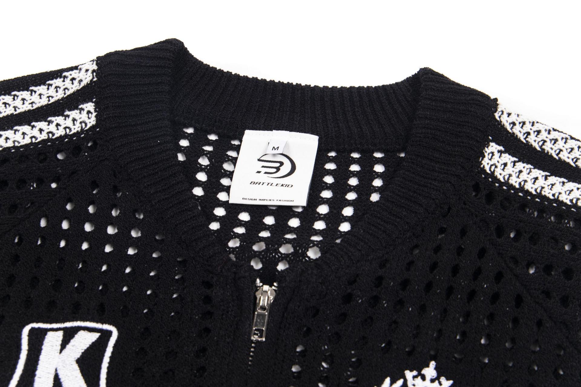 트렌디 한 브랜드 3 바 할로우 아웃 메쉬 남성용 반팔 스웨터 미국 하이 스트리트 힙합 루즈 커플 반소매 탑