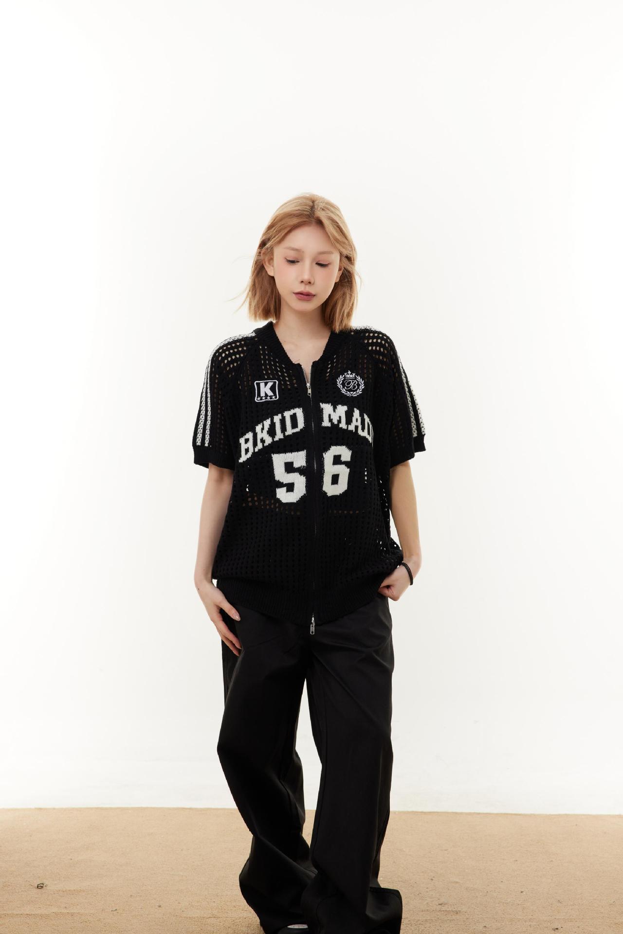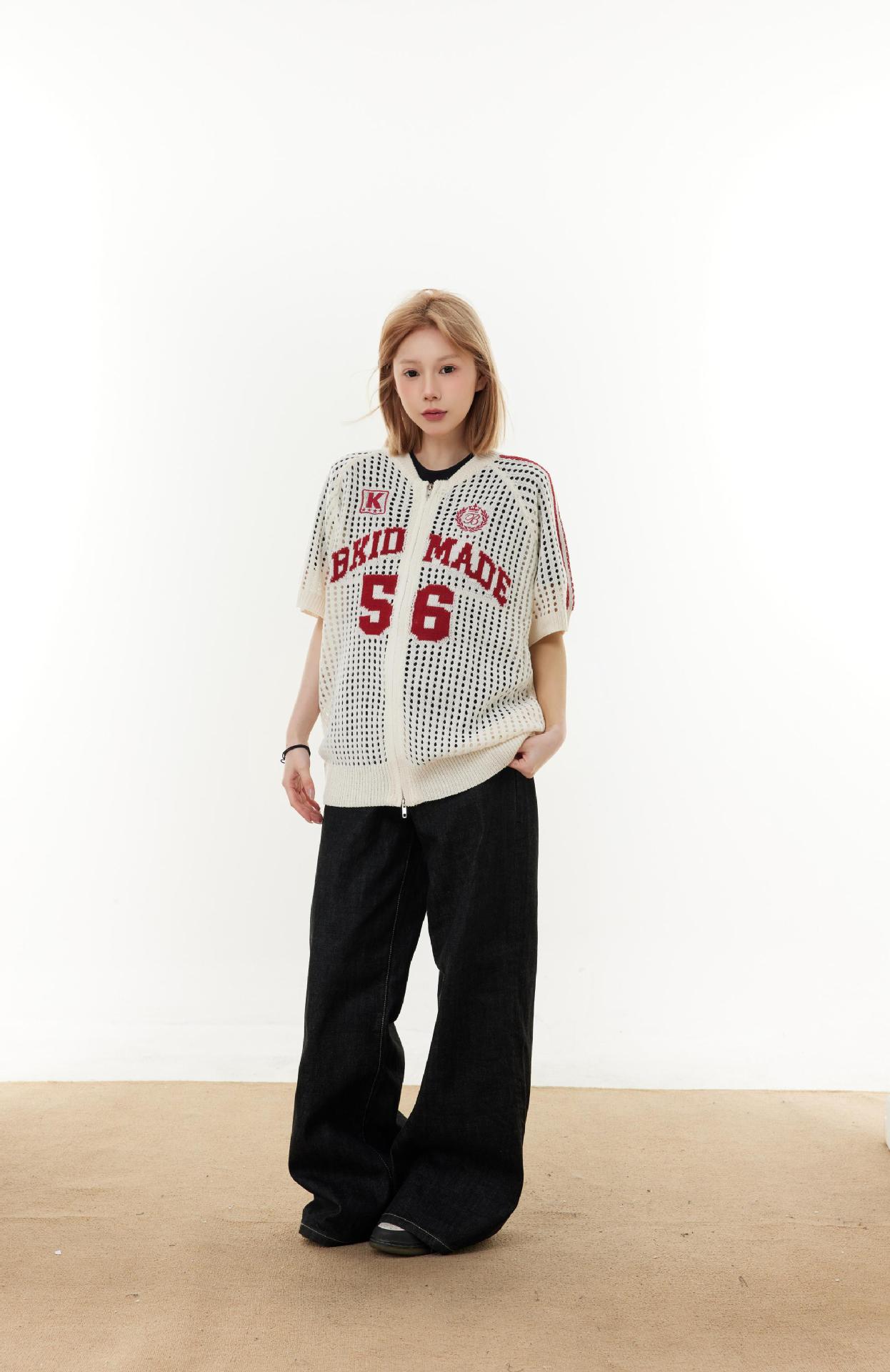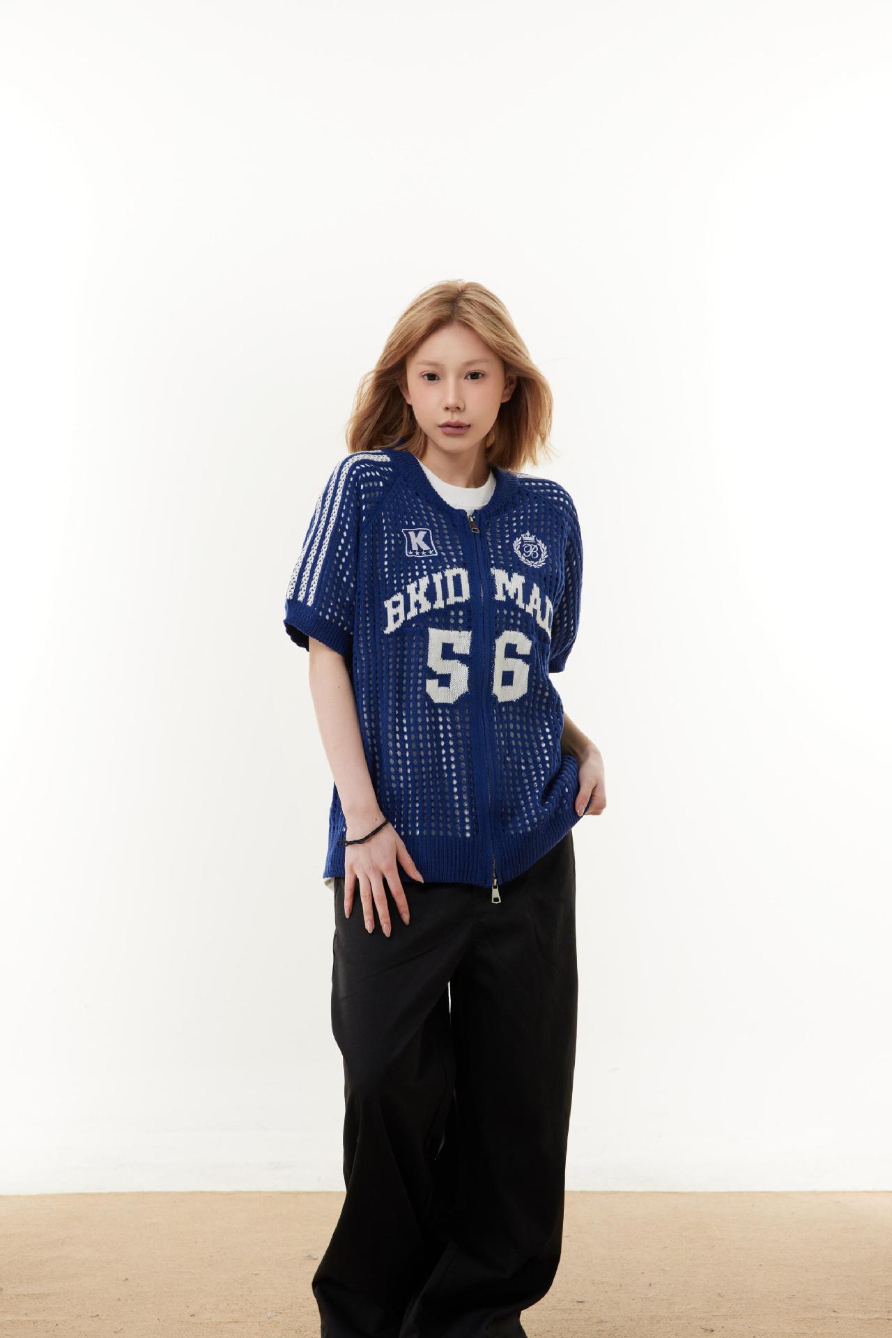 트렌디 한 브랜드 3 바 할로우 아웃 메쉬 남성용 반팔 스웨터 미국 하이 스트리트 힙합 루즈 커플 반소매 탑스토어 가기