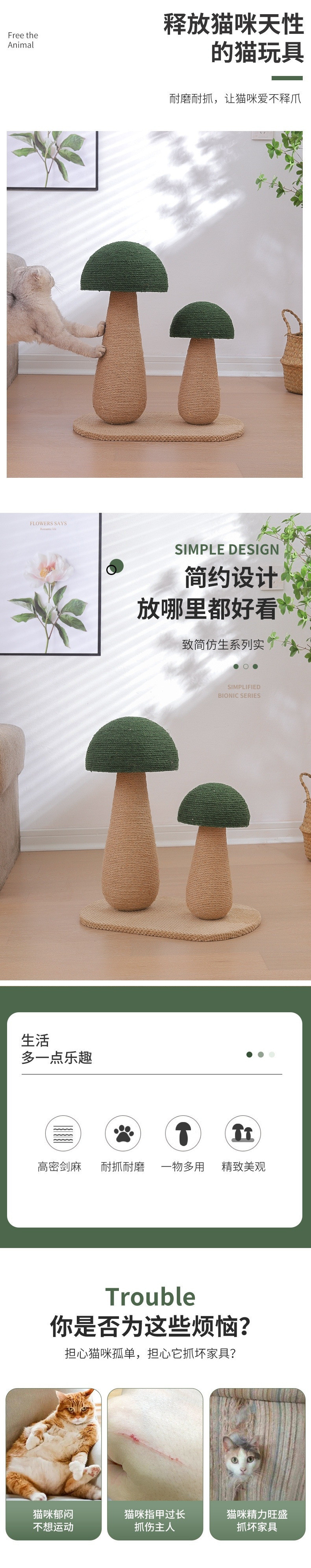 사마귀 로프 고양이 스크래치 보드 고양이 스크래치 기둥 내마모성 버섯 수직 발톱 연삭 장난감 고양이 용품 재미있는 고양이 장난감