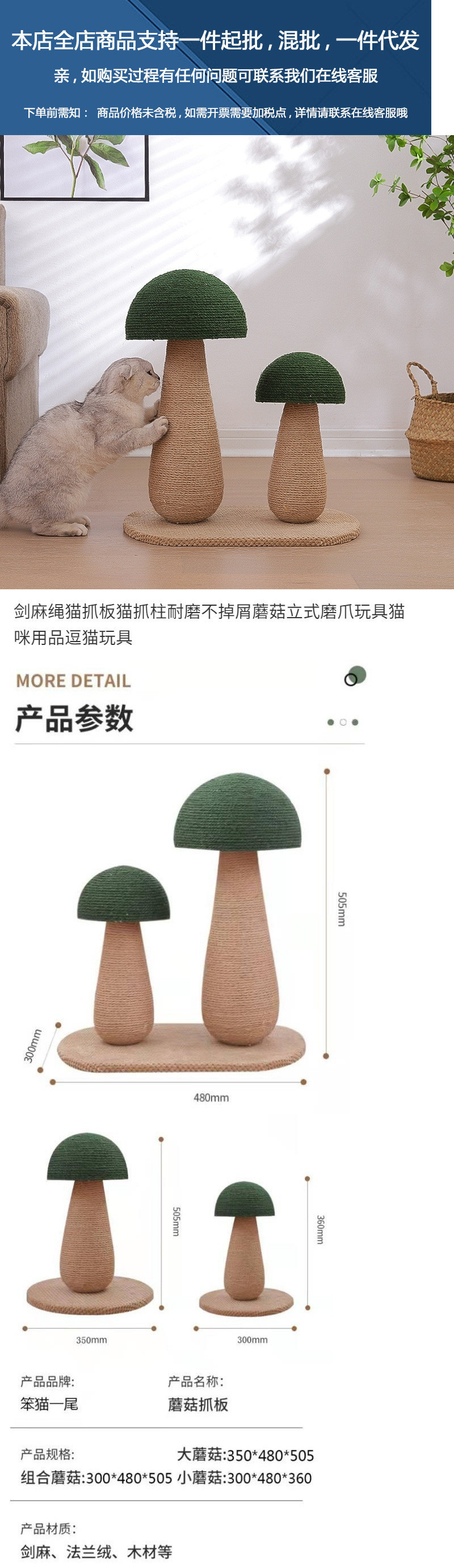 사마귀 로프 고양이 스크래치 보드 고양이 스크래치 기둥 내마모성 버섯 수직 발톱 연삭 장난감 고양이 용품 재미있는 고양이 장난감스토어 가기