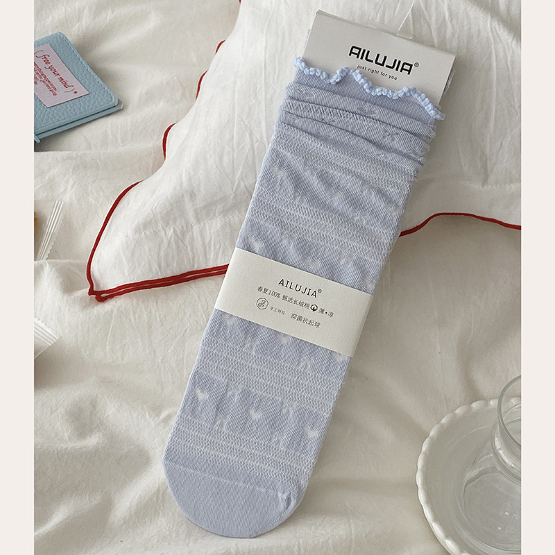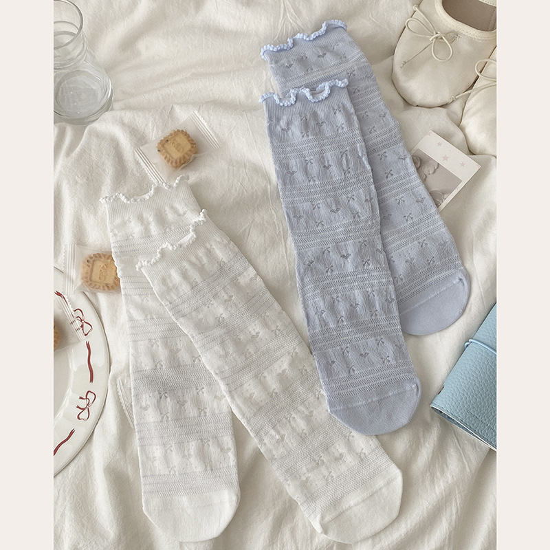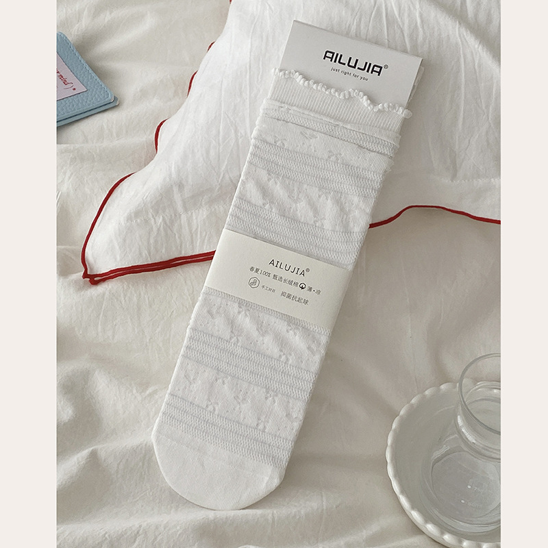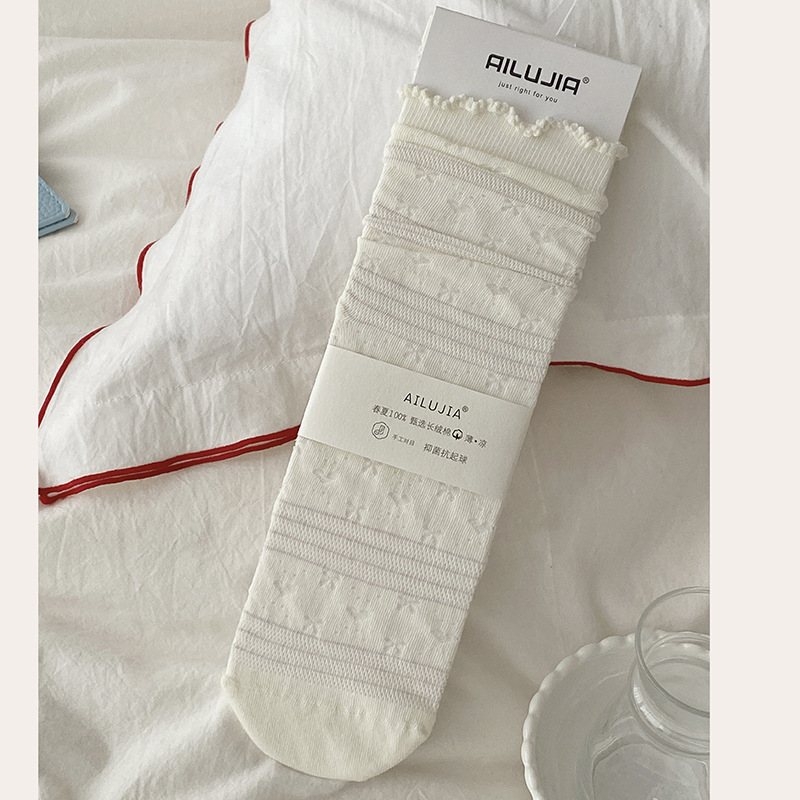 화이트 레이스 양말 어린이 중간 길이 양말 여름 얇은 통기성 코튼 양말 발레 스타일 일본식 소녀 여름
