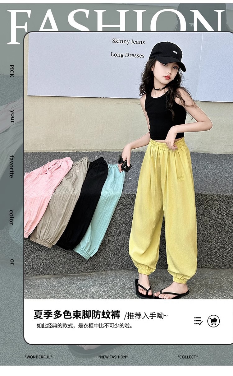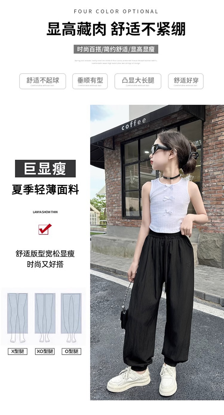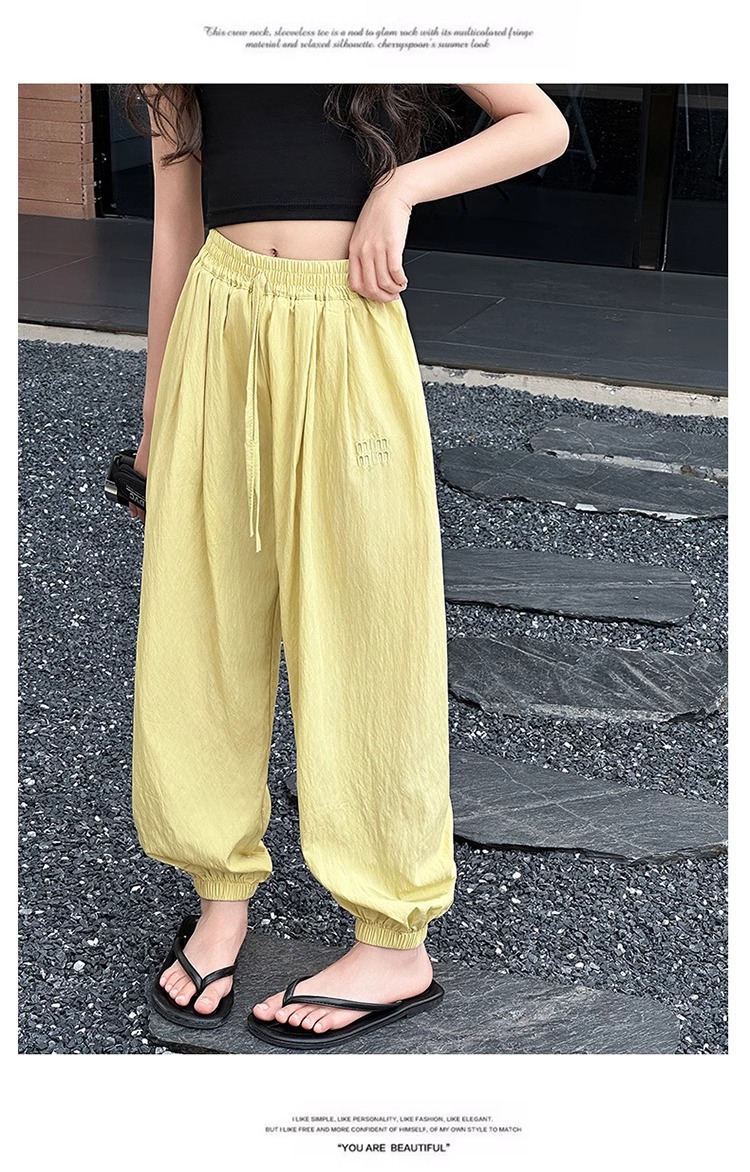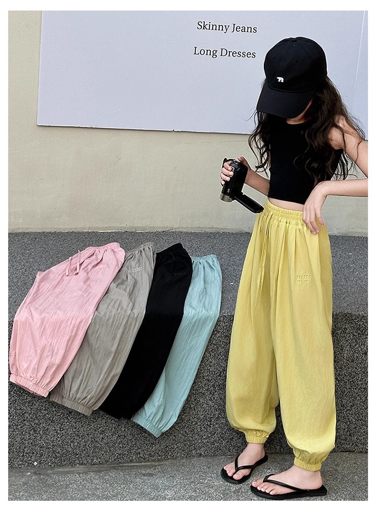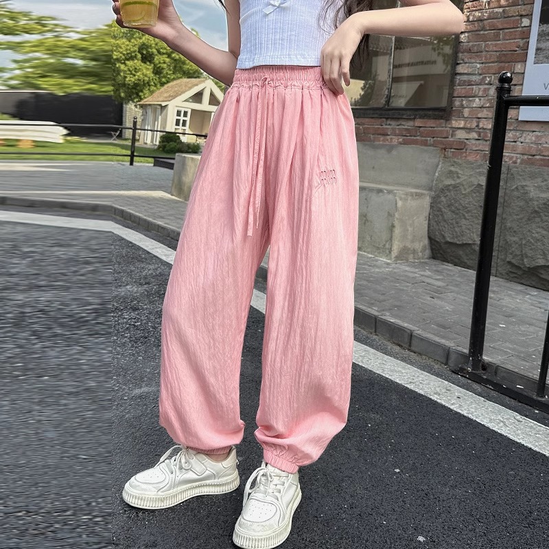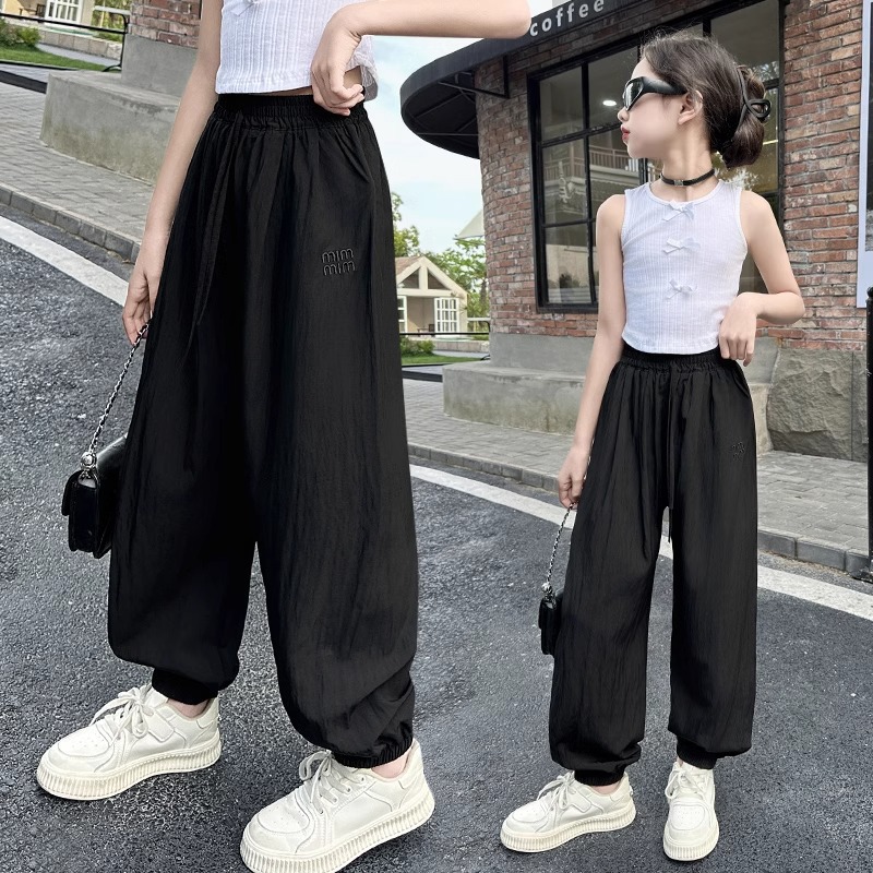 여자 야마모토 바지 여름 얇은 2025 새로운 여자 여름 큰 어린이 얼음 실크 모기 방지 바지 여름 어린이 바지스토어 가기