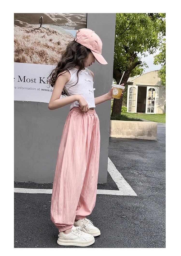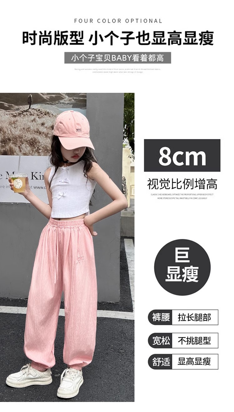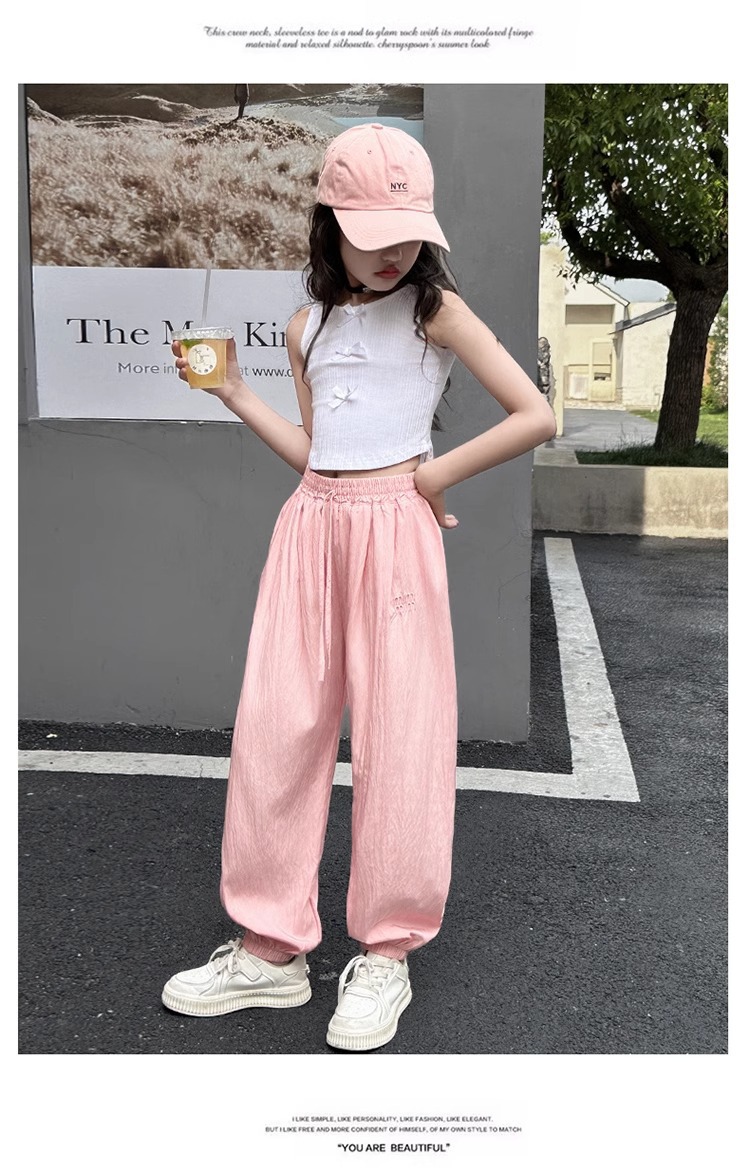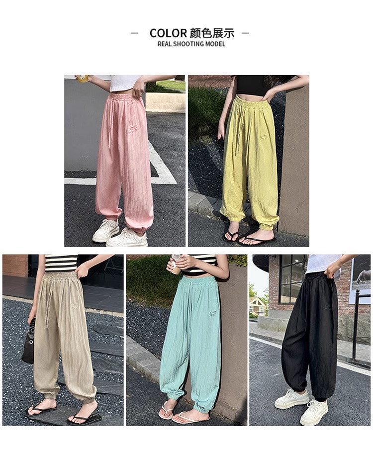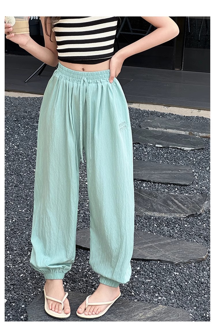 여자 야마모토 바지 여름 얇은 2025 새로운 여자 여름 큰 어린이 얼음 실크 모기 방지 바지 여름 어린이 바지스토어 가기