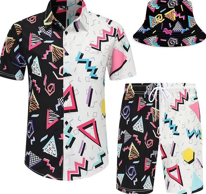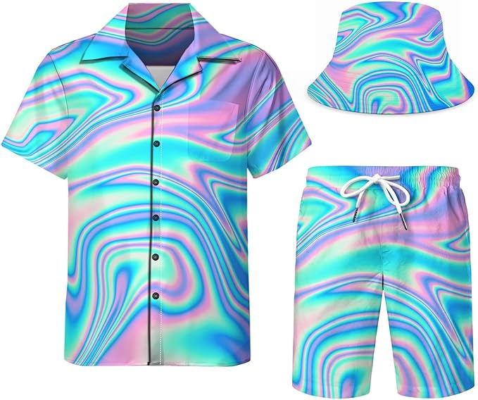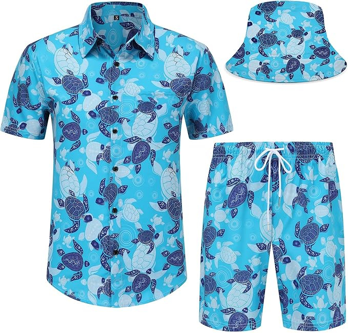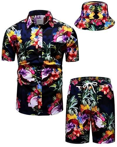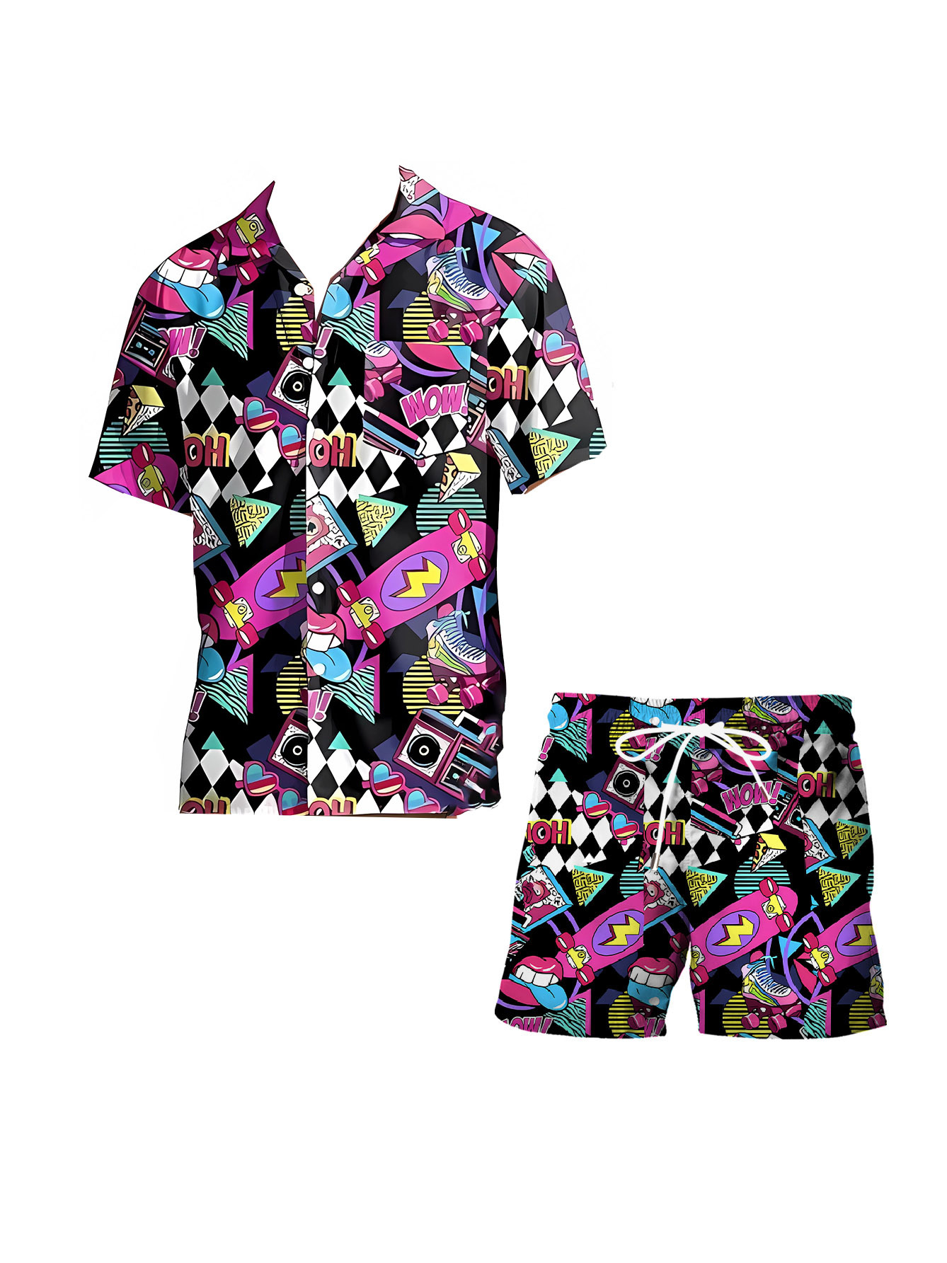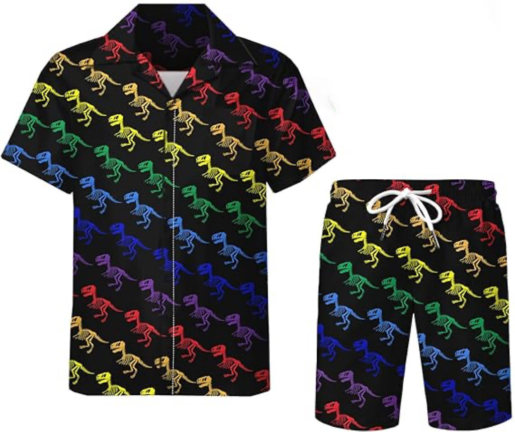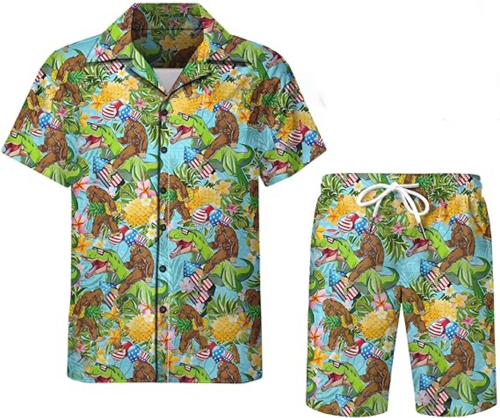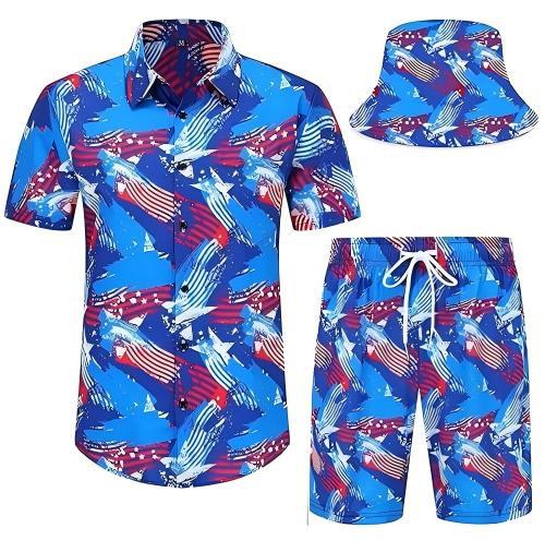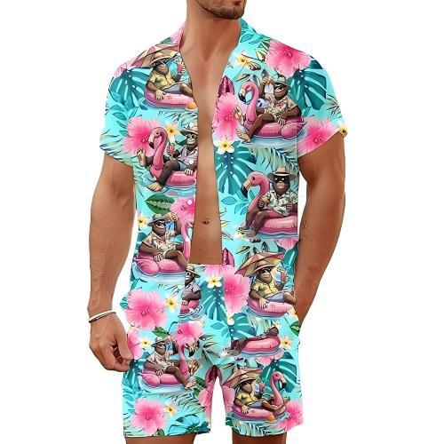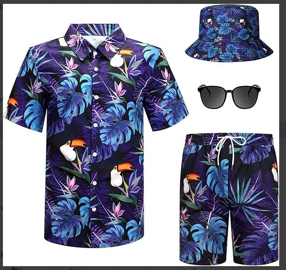 유럽 및 미국 스타일 셔츠 아마존 3D 프린팅 미니멀리스트 셔츠 티셔츠 반팔 반바지 비치 세트 남성용 통기성 항균