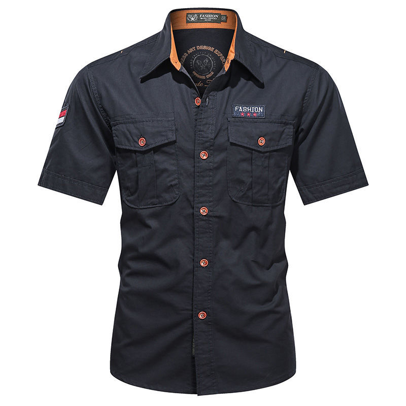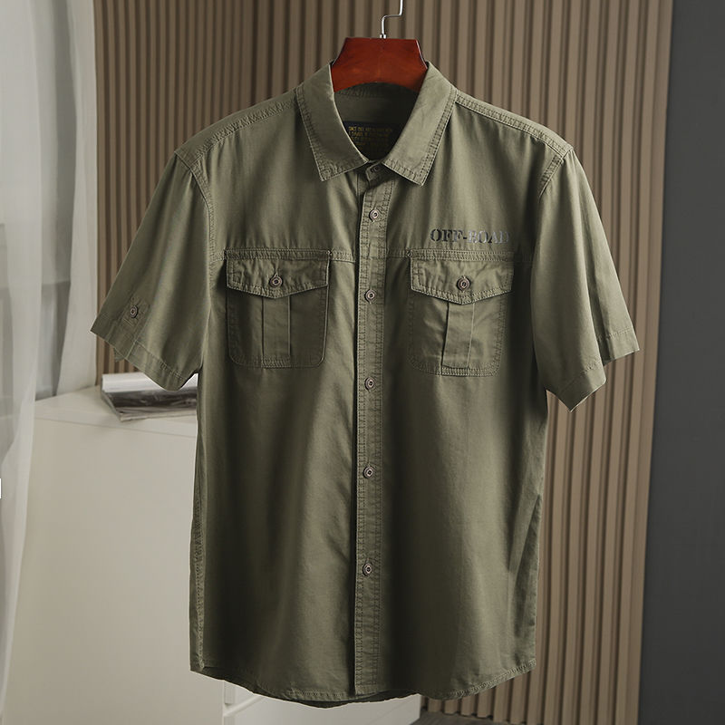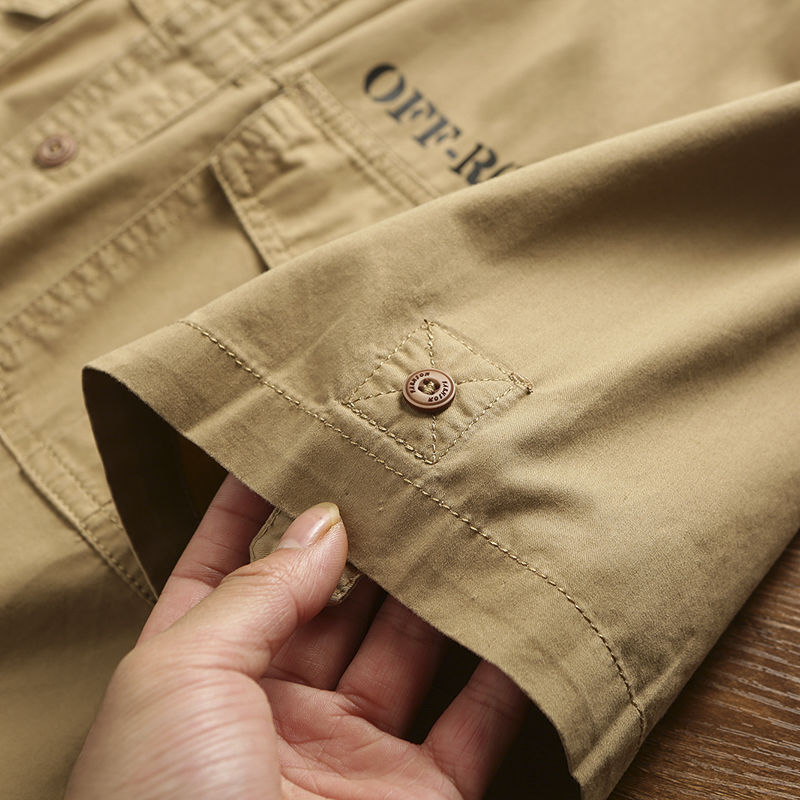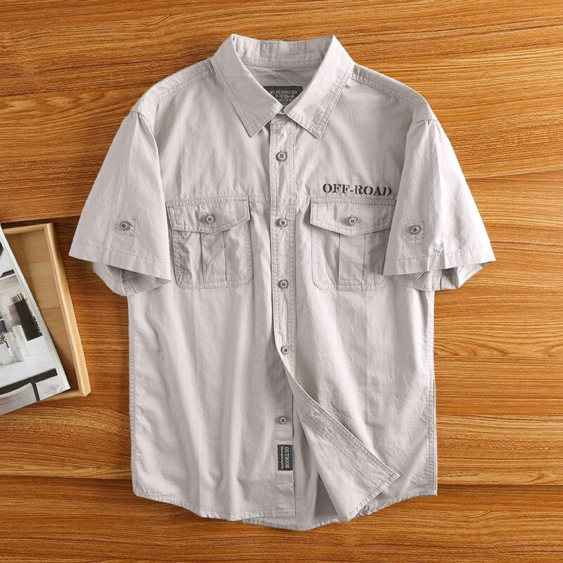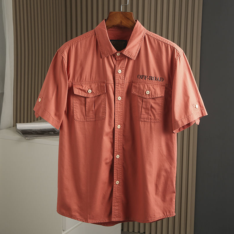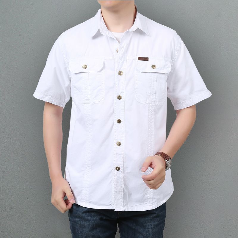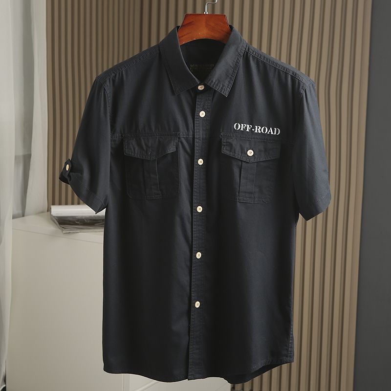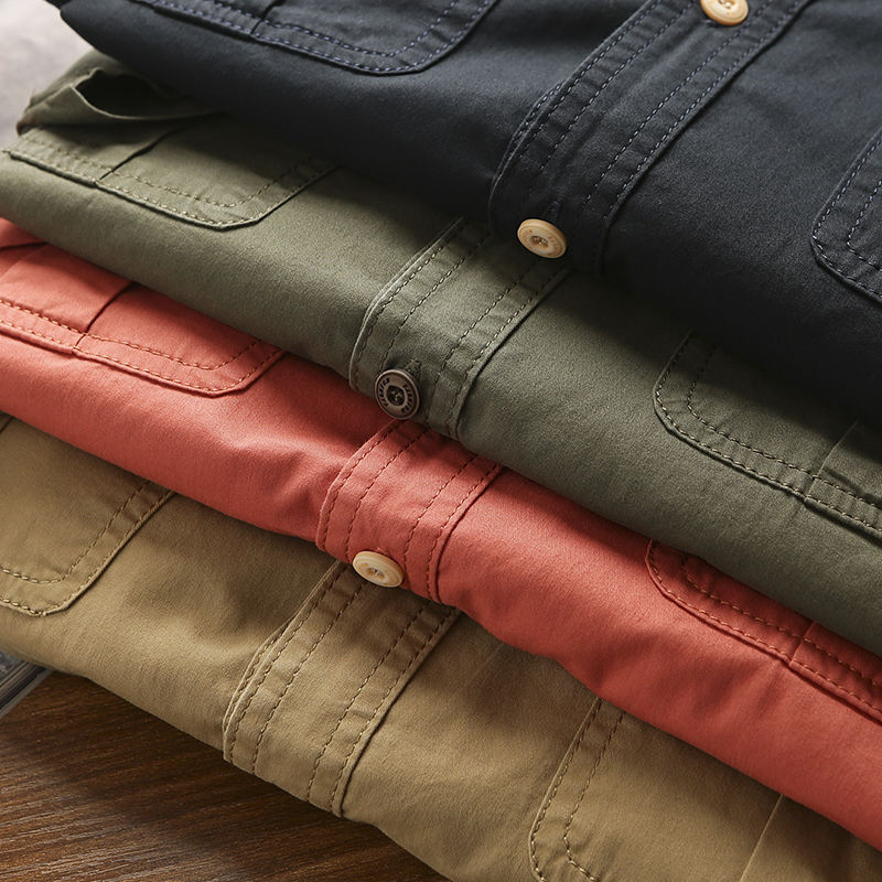다중 포켓 작업복, 대형 사이즈, 대외 무역 남성 의류 공장 컷 라벨 테일 제품, 캐주얼 워싱 순면 반팔 셔츠