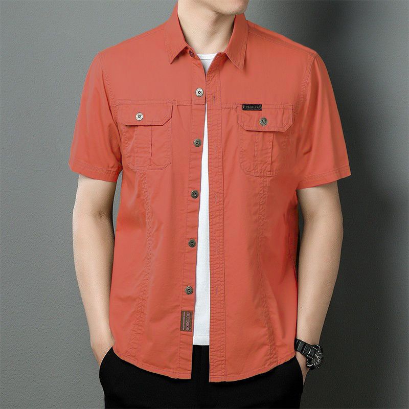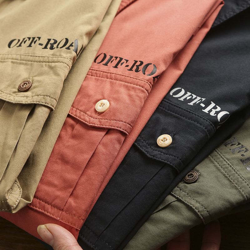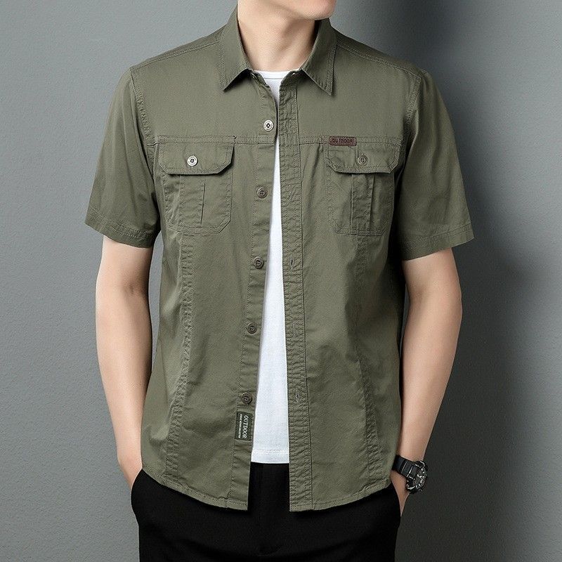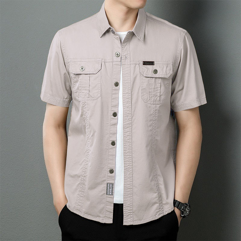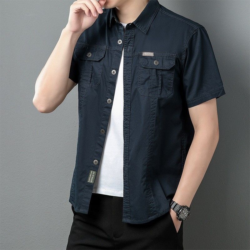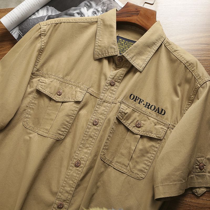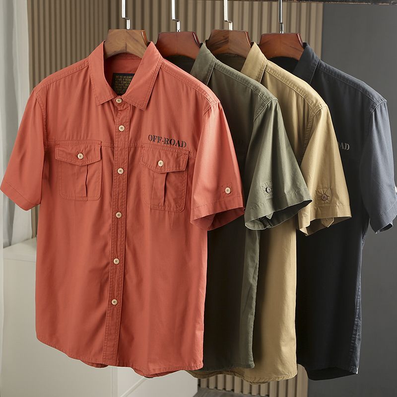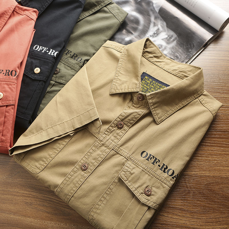 다중 포켓 작업복, 대형 사이즈, 대외 무역 남성 의류 공장 컷 라벨 테일 제품, 캐주얼 워싱 순면 반팔 셔츠스토어 가기