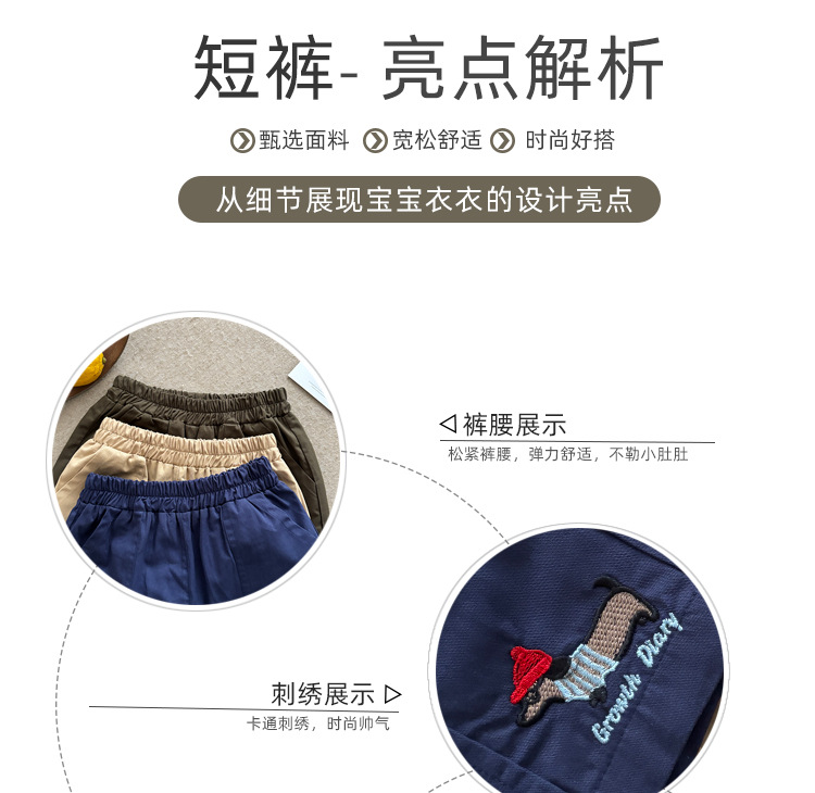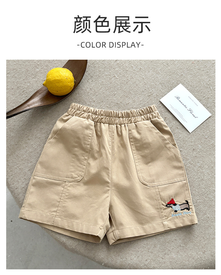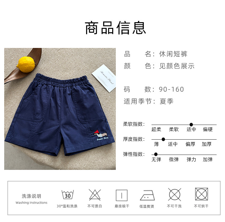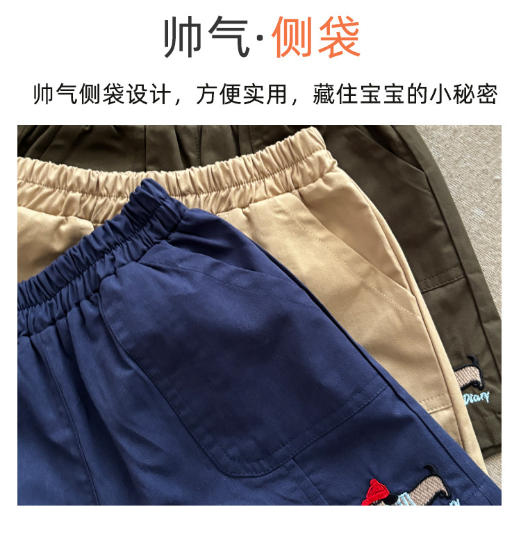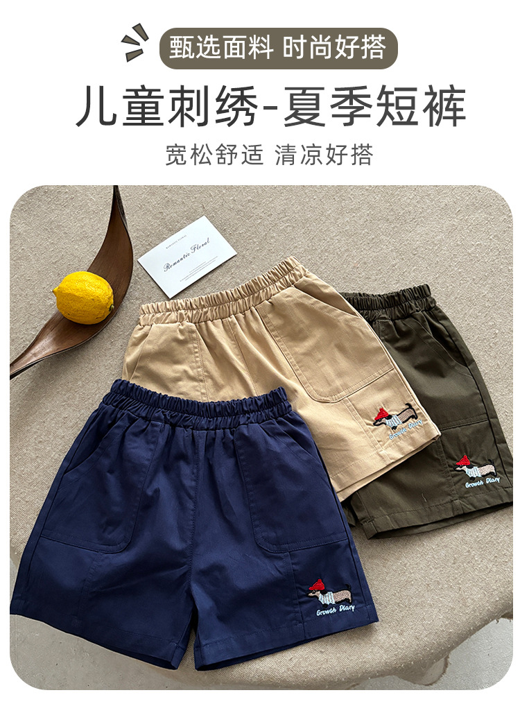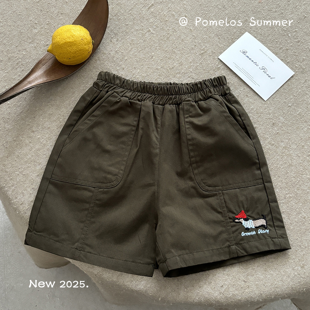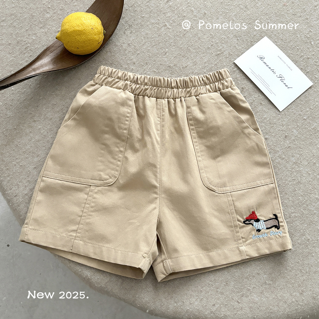 2025 새로운 어린이 여름 순수 코튼 수 놓은 반바지 소년 야외 캐주얼 반바지 어린이 작업복 5 점 바지스토어 가기