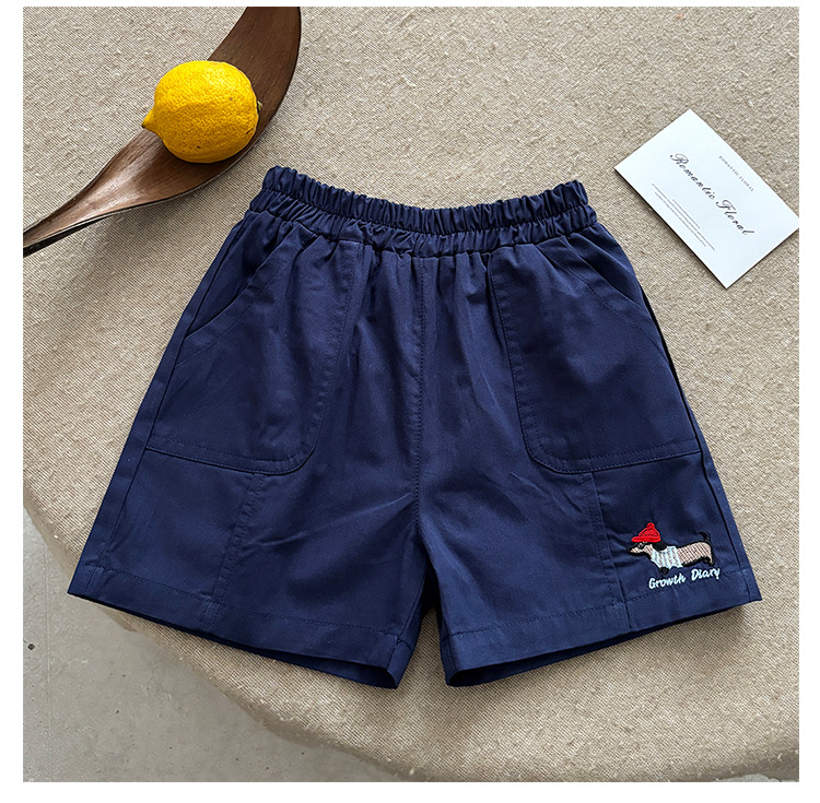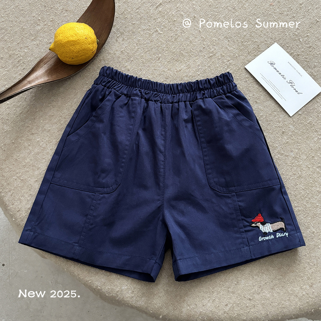 • 강아지 자수 반바지-네이비블루
