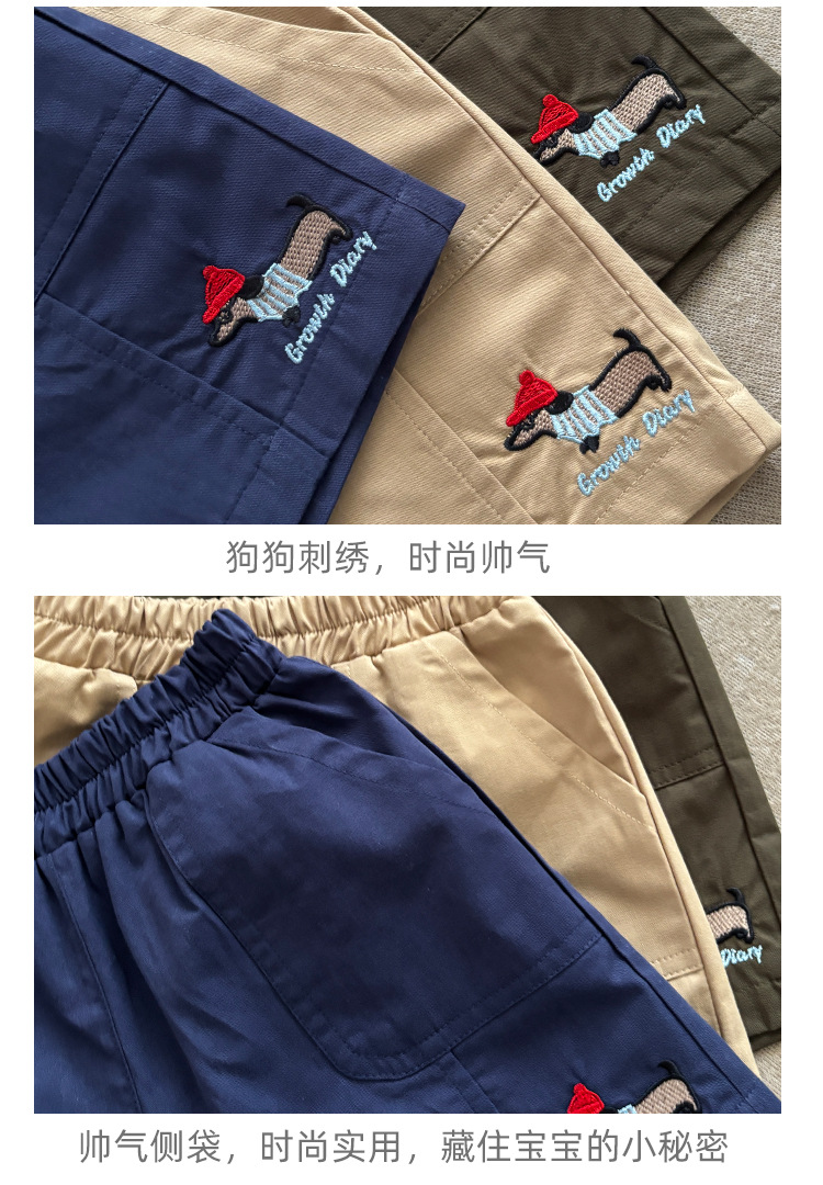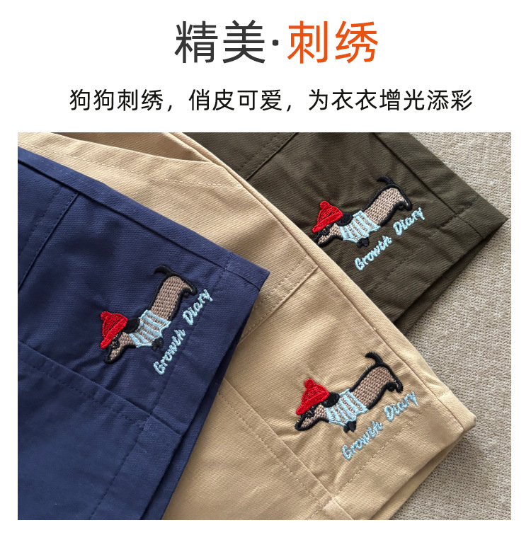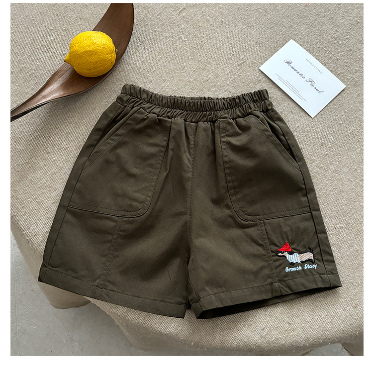 • 강아지 자수 반바지 - 카키