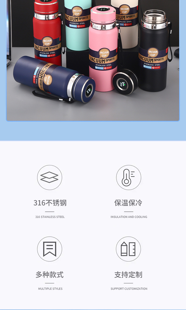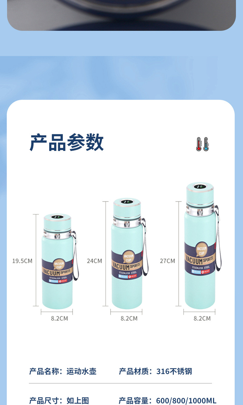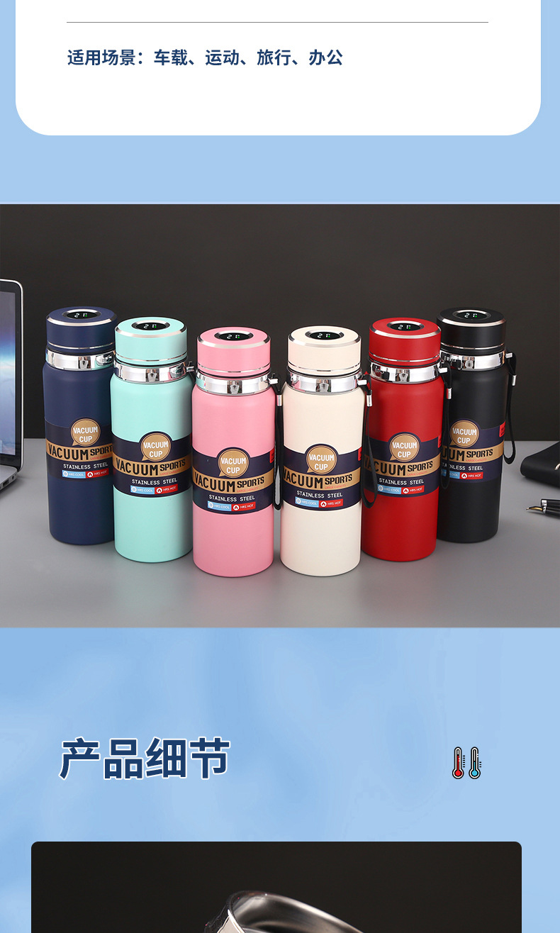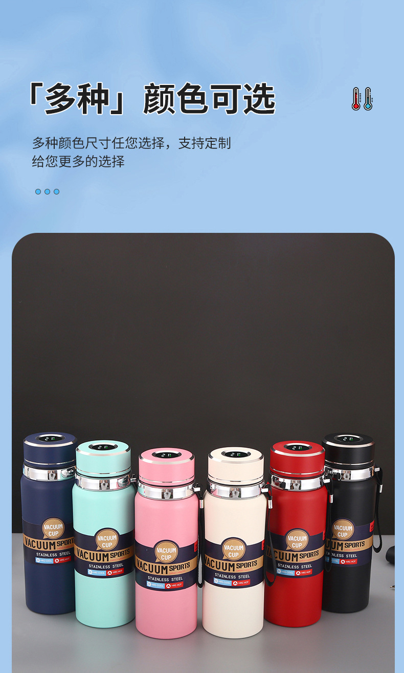 대용량 316 스테인리스 온도 표시 보온병 야외 휴대용 스포츠 물병 차량용 패션 스트랩 보온병스토어 가기